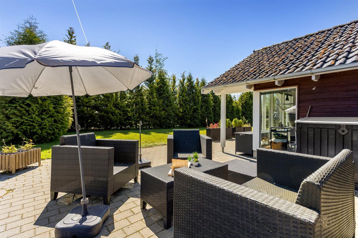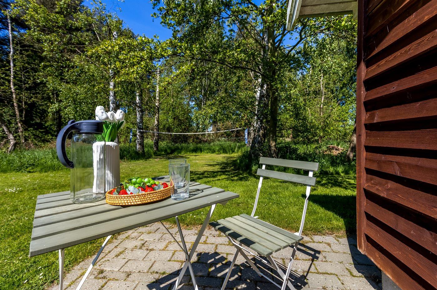 Udendørs er der tænkt på de små feriegæster i form af sandkasse og gynge, legetøj, legetårn, rutchebane og udendørs spil. Der er flere dejlige terrasser, hvor I kan nyde de dejlige dage med sol og grill, samt en stor have til leg.