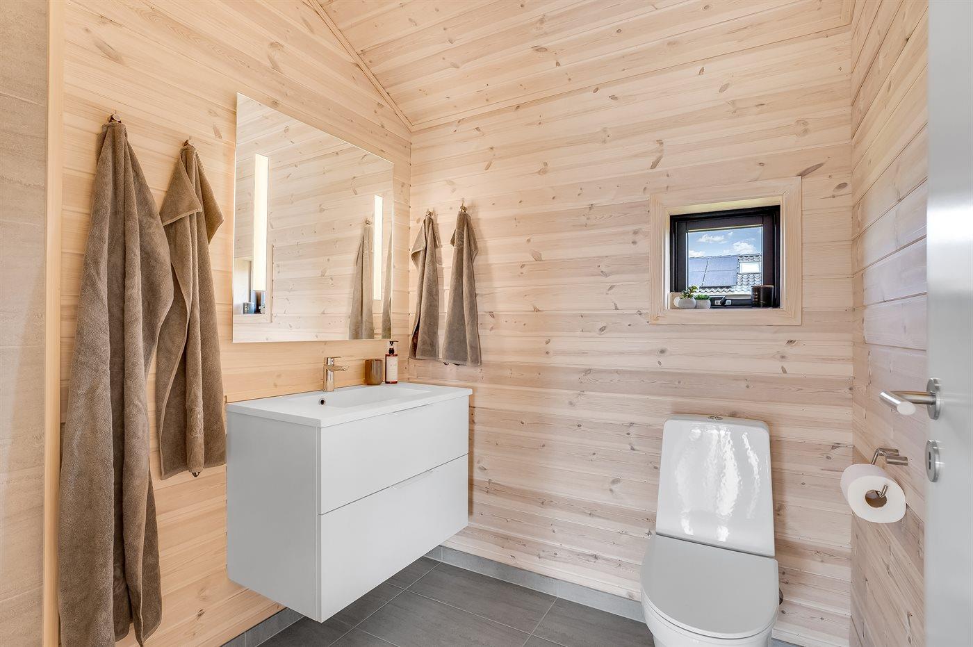 Der er 2 badeværelser med bruseniche og 2 toiletter. Der er gulvvarme på 2 badeværelser.