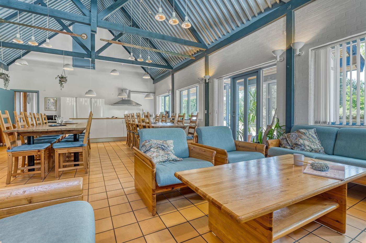 Huset er perfekt indrettet til den store familie-sammenkomst eller til flere familier, der ønsker at bo sammen tæt på strand og aktivitetsmuligheder. Adgang til fælles tennisbane, legeplads, hoppepude og fodboldbane i feriebyen.