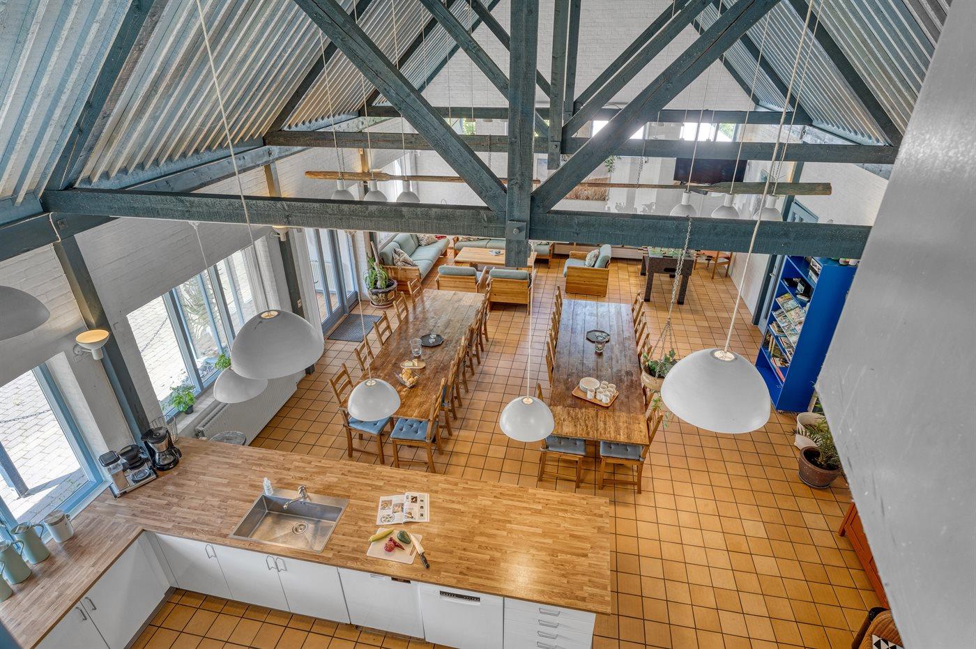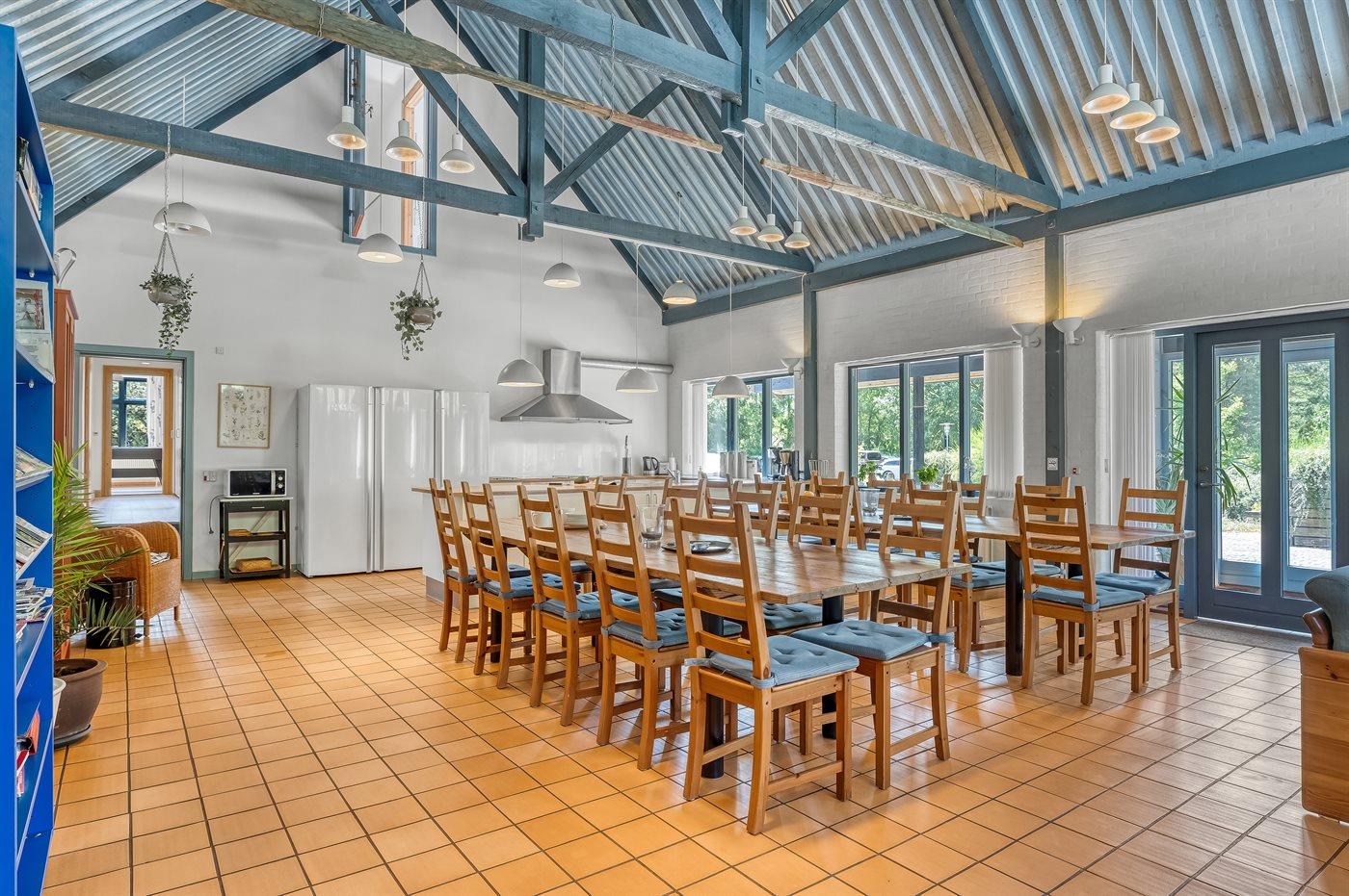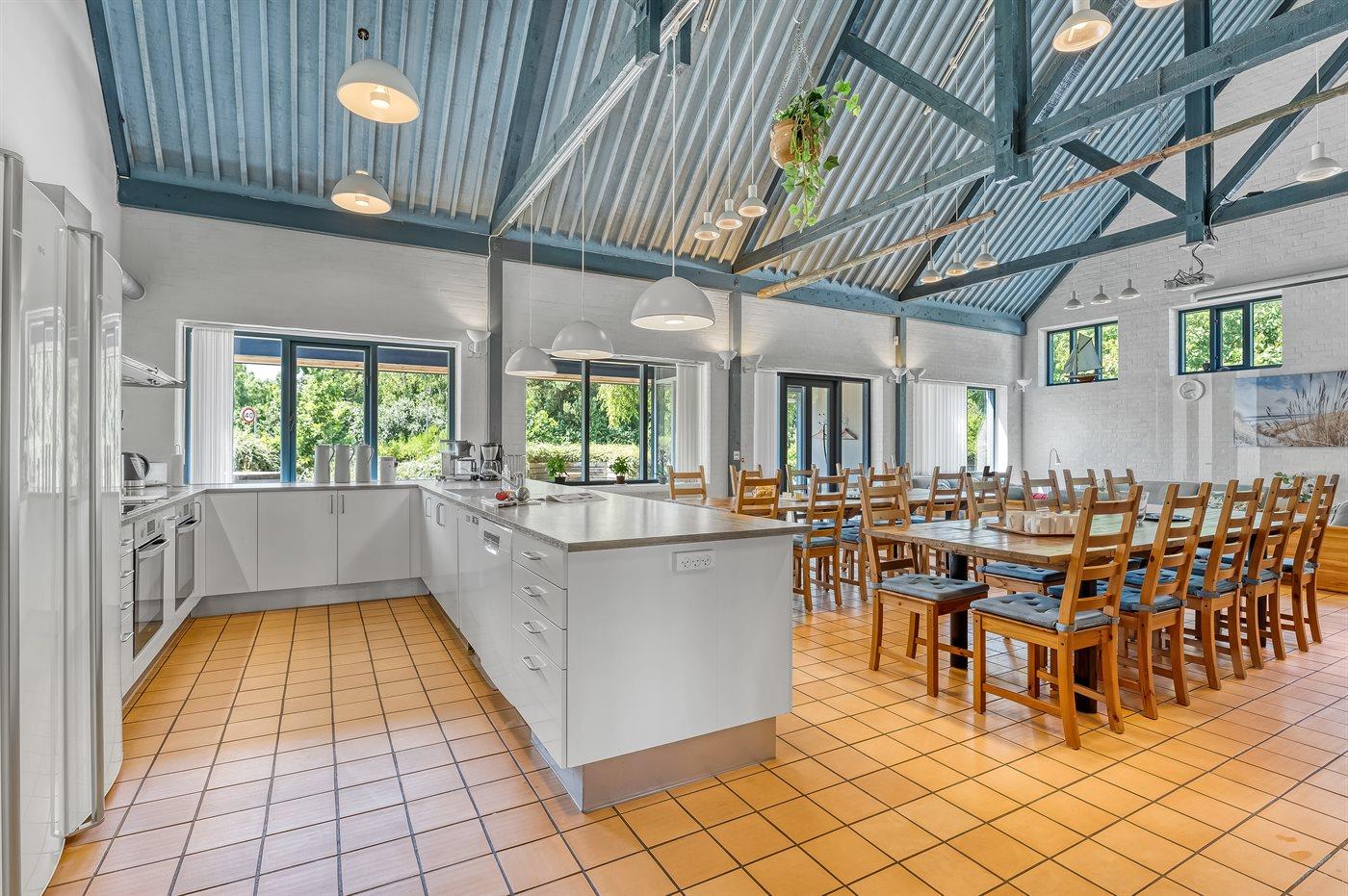 Køkkenet er udstyret med 2 køleskabe. Der er 8 keramiske kogeplader, 2 varmluftovne, mikrobølgeovn samt 2 opvaskemaskiner.