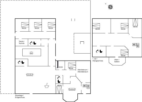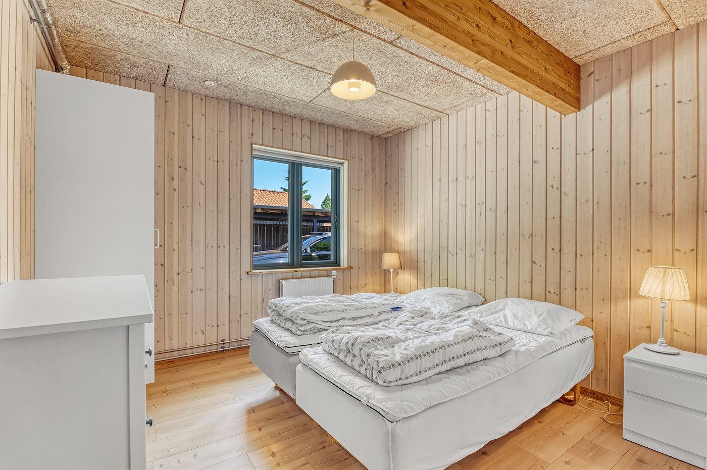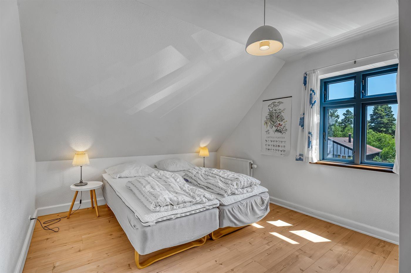 Der er i alt 10 soveværelser. Sovepladserne fordeler sig på: 18 sovepladser i dobbeltsenge. 2 sovepladser i køjeseng. Derudover er der 1 stk. barneseng.