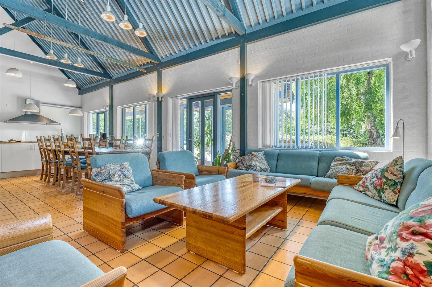 Rummeligt sommerhus nær Marielysts strand med pool, vildmarksbad og aktivitetsrum til den store familie.