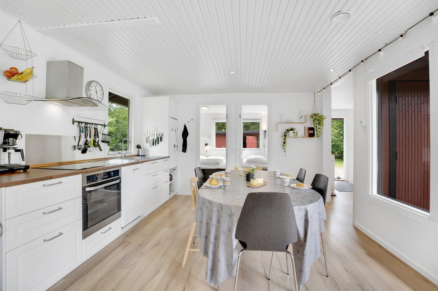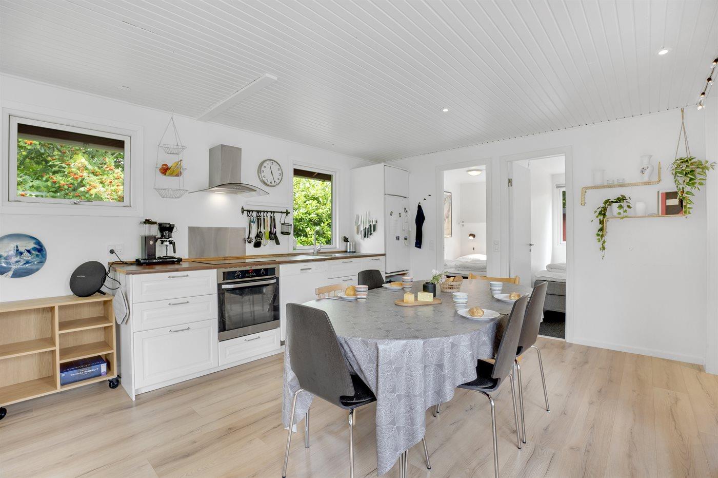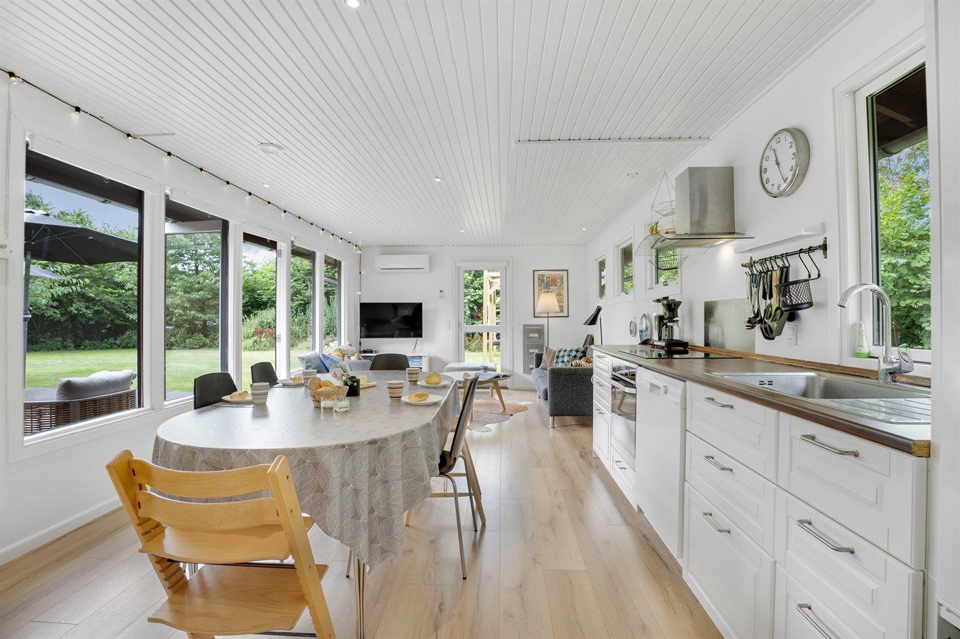 Køkkenet er udstyret med 1 køleskab. Der er 4 keramiske kogeplader, varmluftovn, mikrobølgeovn samt opvaskemaskine.