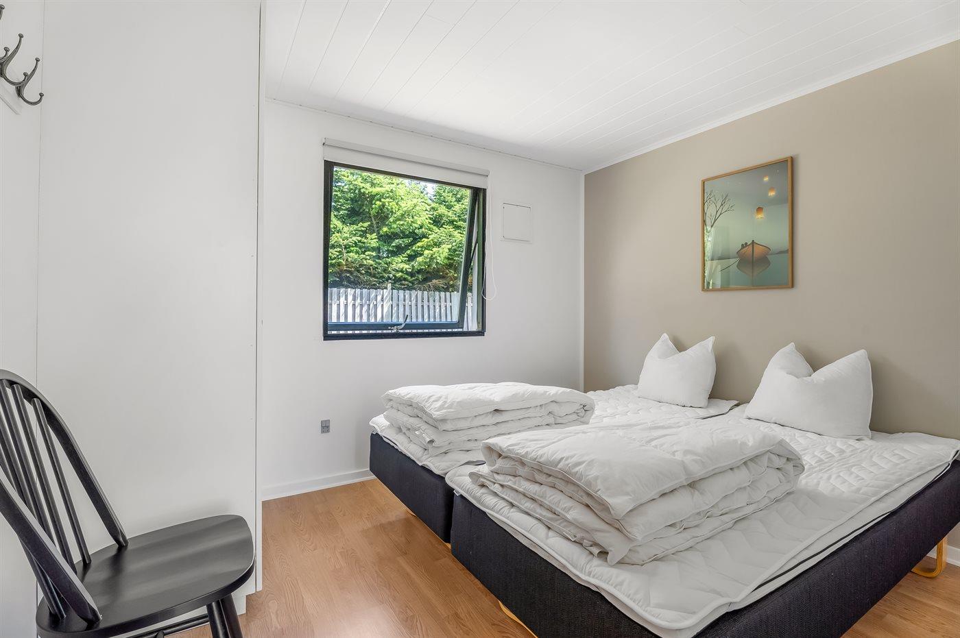Der er i alt 3 soveværelser. Sovepladserne fordeler sig på: 6 sovepladser i dobbeltsenge. 2 af disse sovepladser befinder sig i anneks. Derudover er der 1 stk. barneseng.