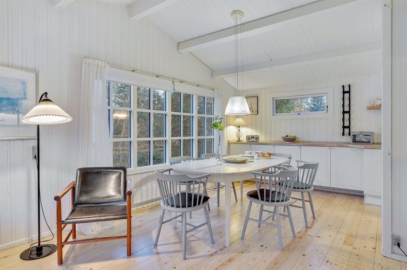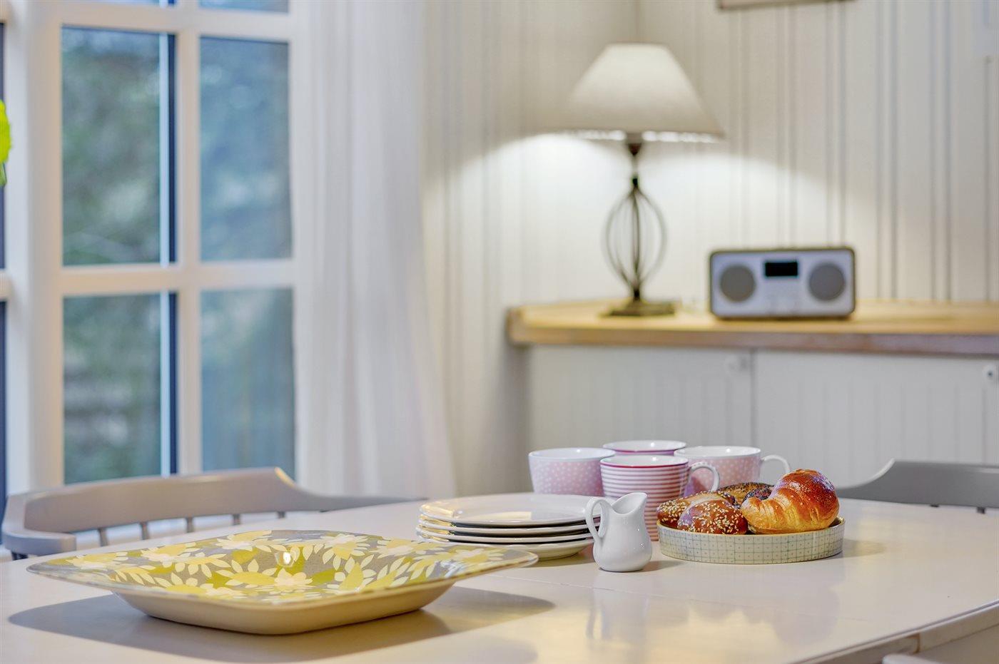 Køkkenet er udstyret med 1 køleskab. Der er 4 keramiske kogeplader, varmluftovn samt opvaskemaskine.