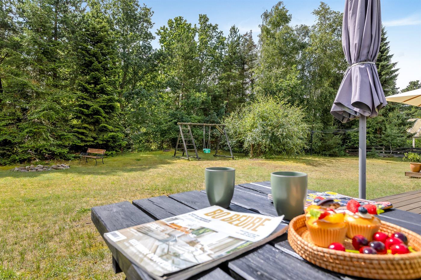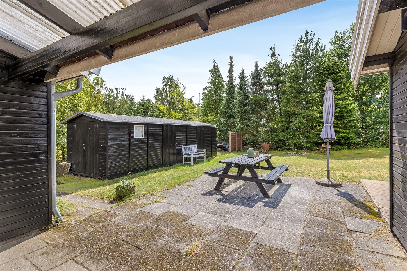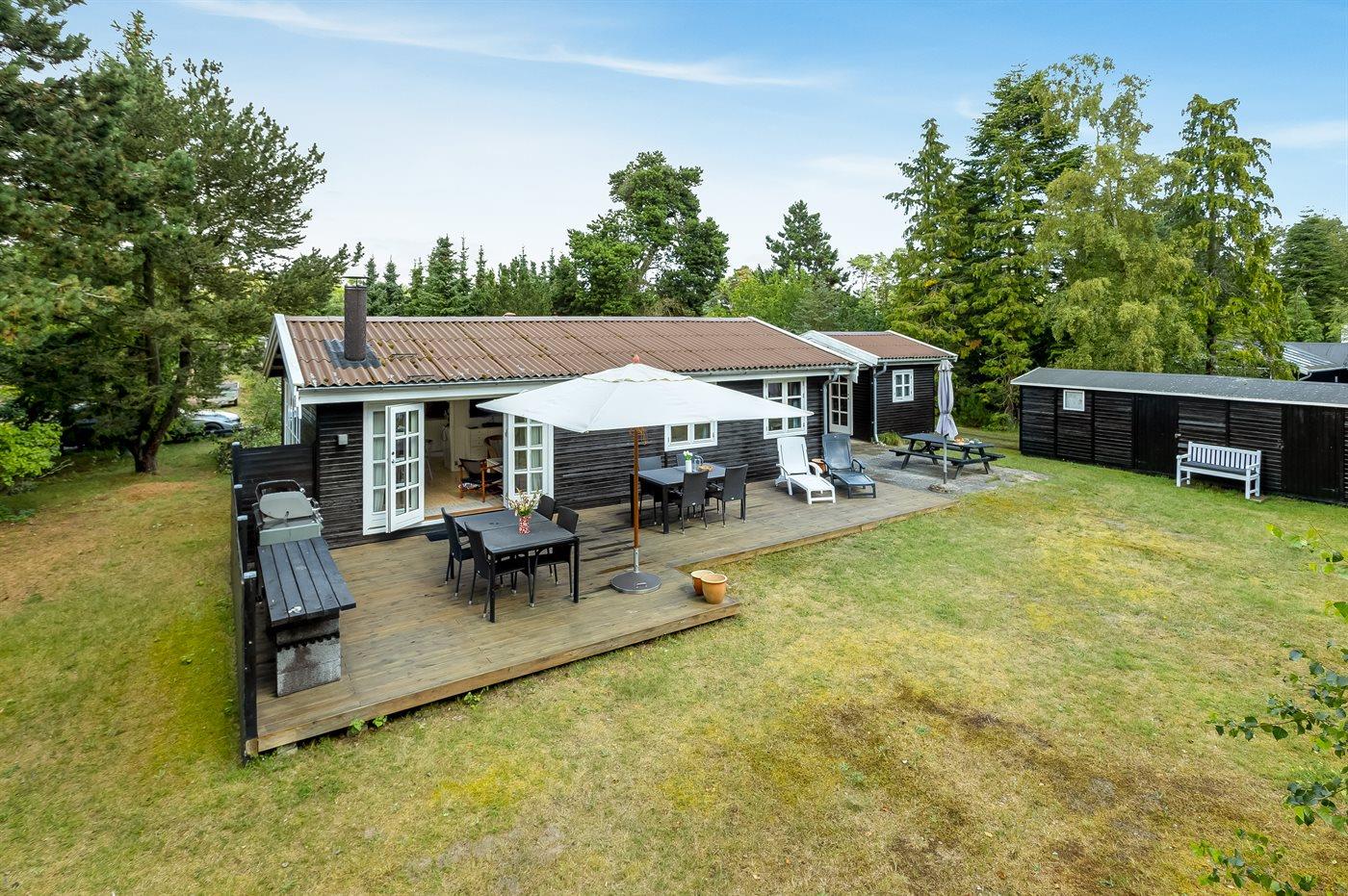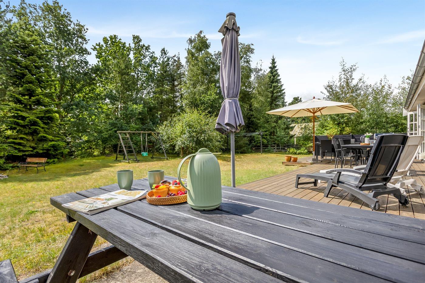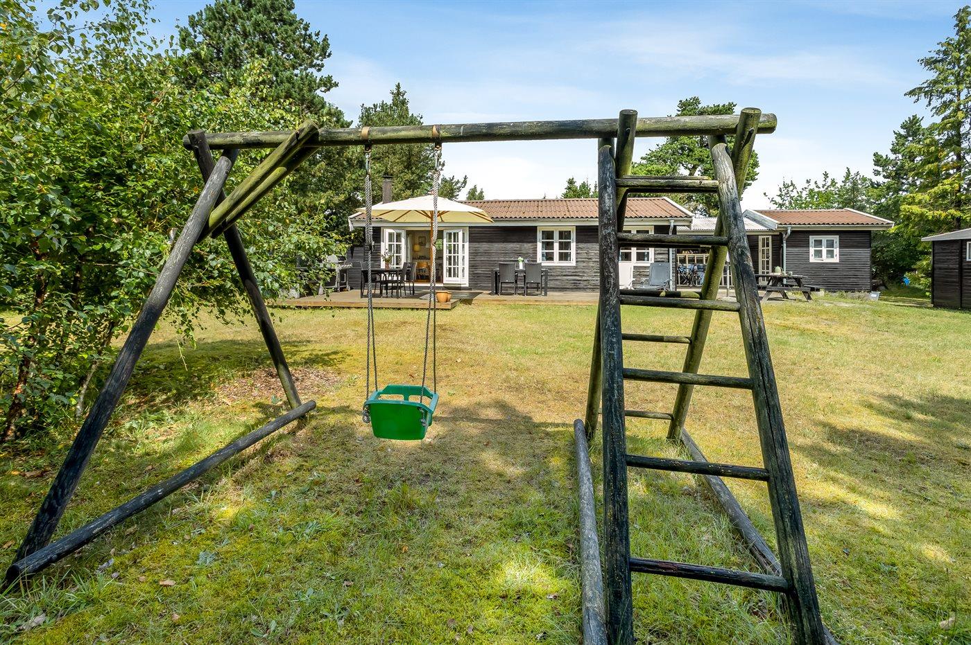 Ferieboligen er beliggende på en 1080 m² stor naturgrund. Der er 200 m til havet. Nærmeste forretning er beliggende i en afstand af 450 m. Til ferieboligen hører 55 m² terrasseareal. Desuden er der 10 m² overdækket terrasse. Gynge. Gasgrill til rådighed. Parkering ved ferieboligen.