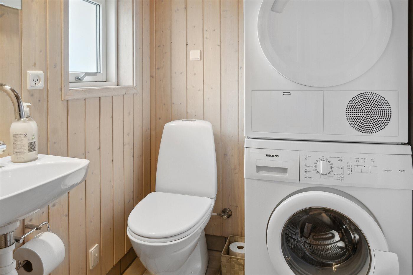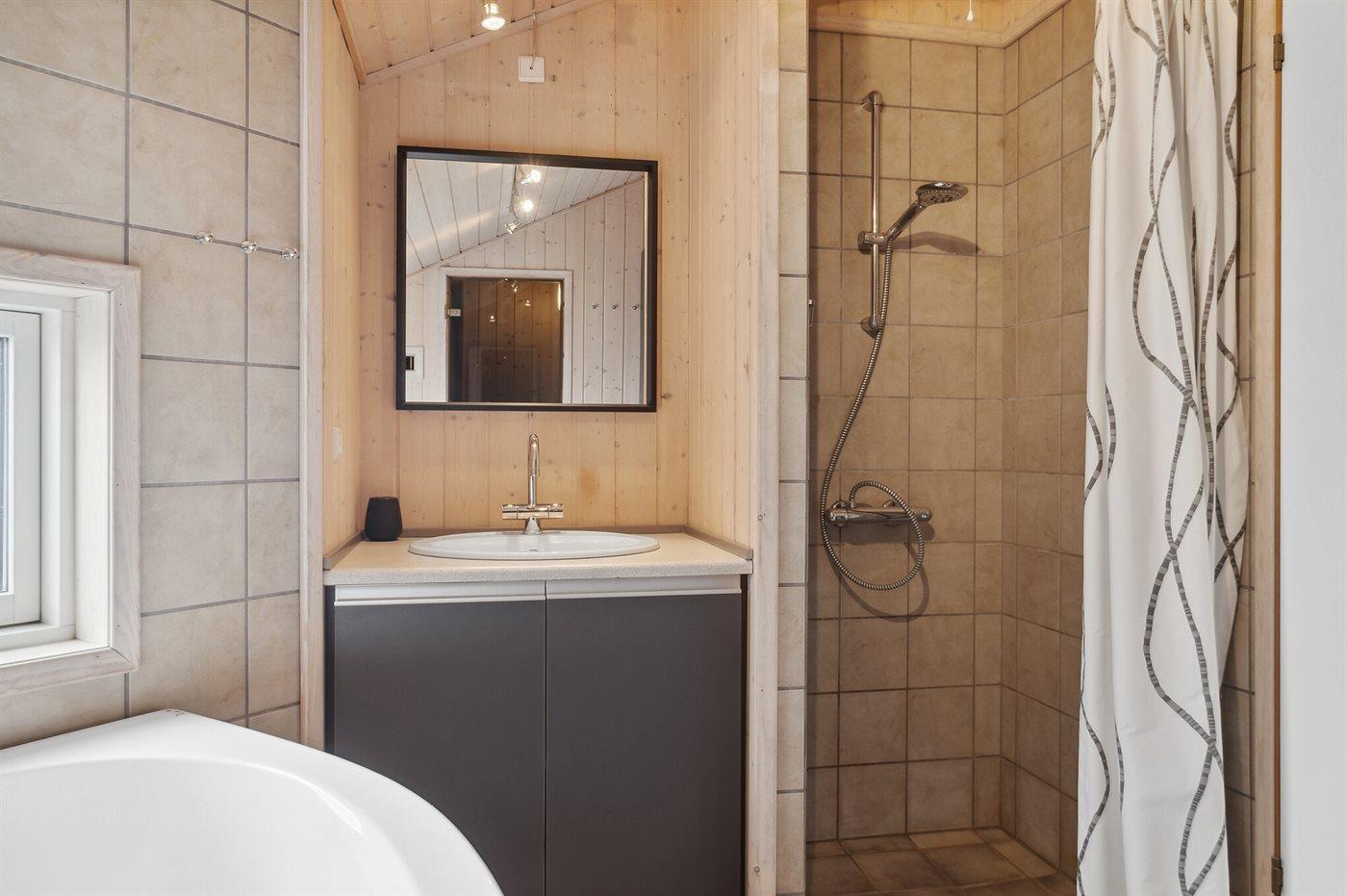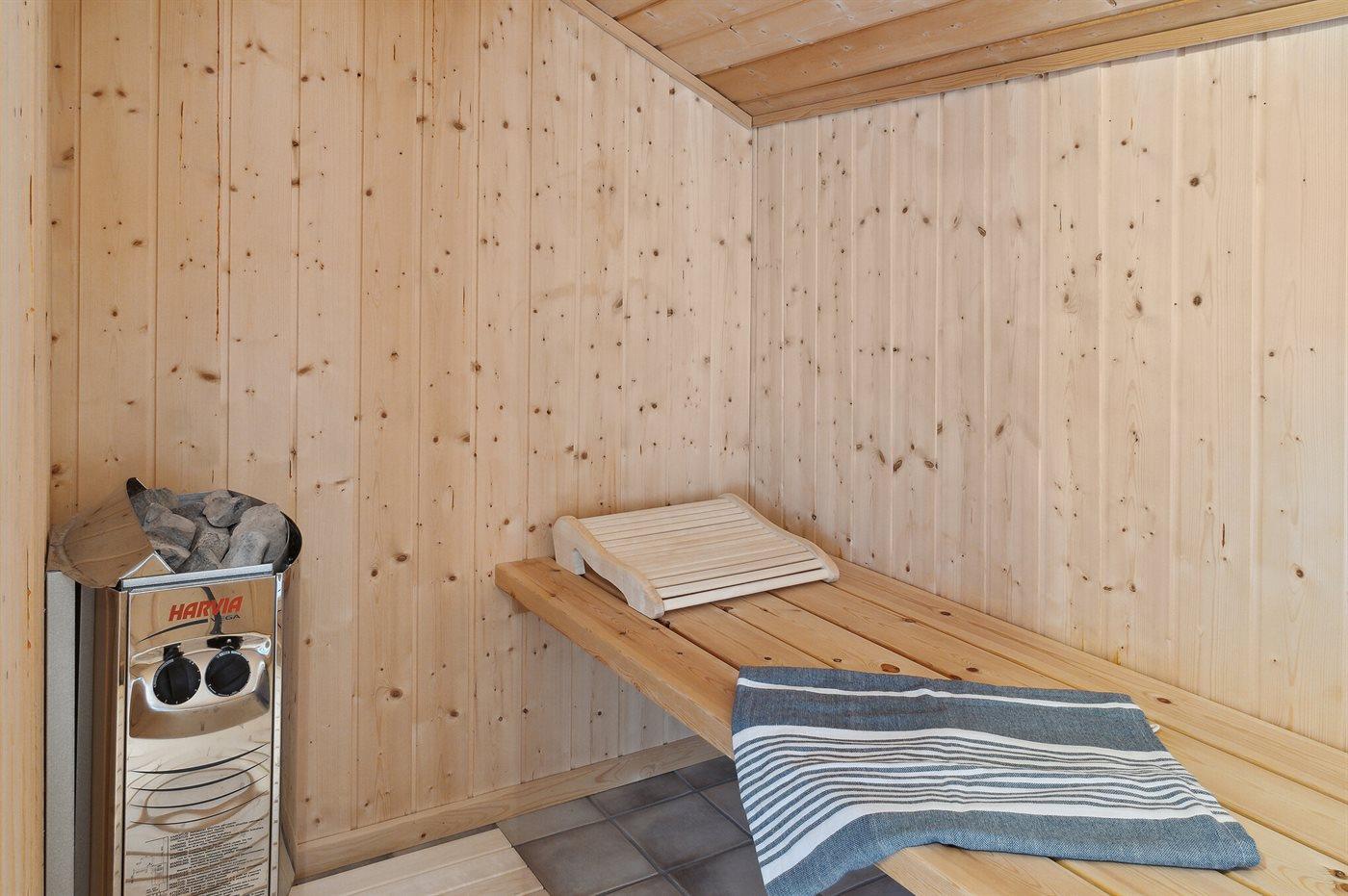 Der er 2 badeværelser med bruseniche og 2 toiletter. Der er gulvvarme på 2 badeværelser. I saunaen er der mulighed for afslapning.