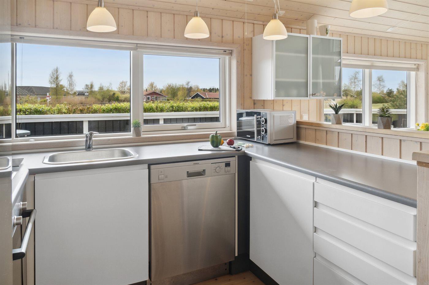 Køkkenet er udstyret med 1 køleskab. Der er 4 keramiske kogeplader, varmluftovn, mikrobølgeovn samt opvaskemaskine.