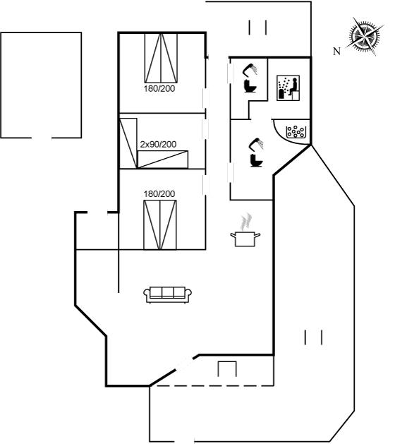 Der er i alt 3 soveværelser. Sovepladserne fordeler sig på: 4 sovepladser i dobbeltsenge. 2 sovepladser i enkeltsenge. 2 sovepladser i alkove. 2 af disse sovepladser befinder sig i stuen. Derudover er der 1 stk. barneseng.