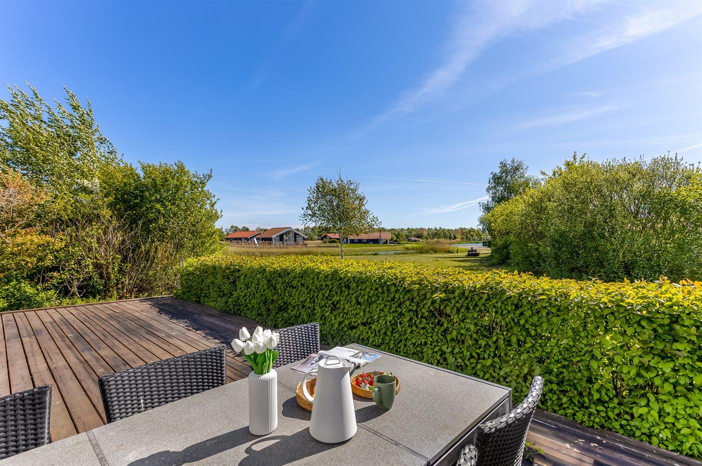 Ferieboligen er beliggende på en 400 m² stor naturgrund. Der er 1100 m til havet. Der er en sø i en afstand af 30 m. Nærmeste forretning er beliggende i en afstand af 1000 m. Til ferieboligen hører 70 m² terrasseareal. Der er redskabsrum. Gynge.