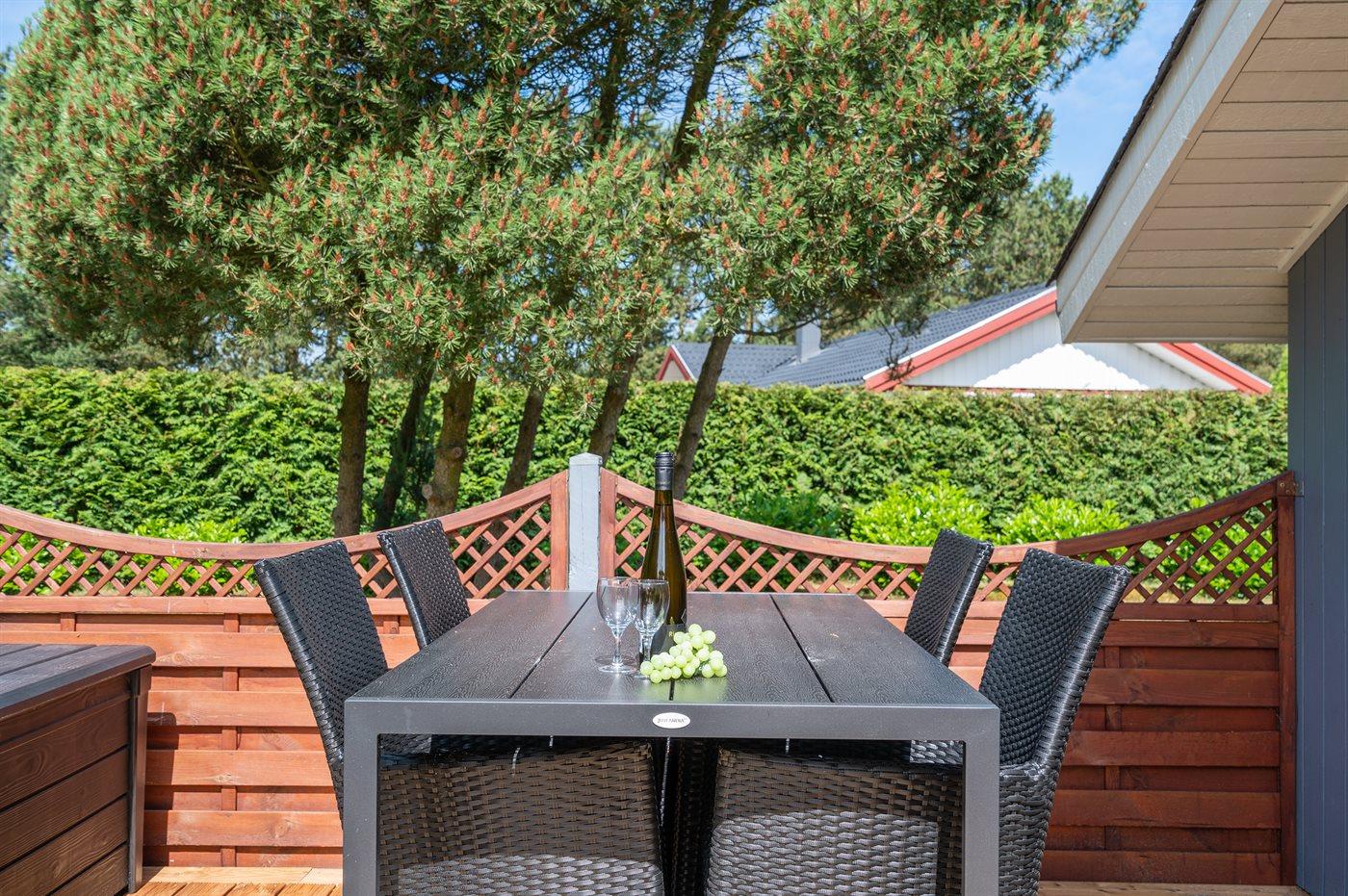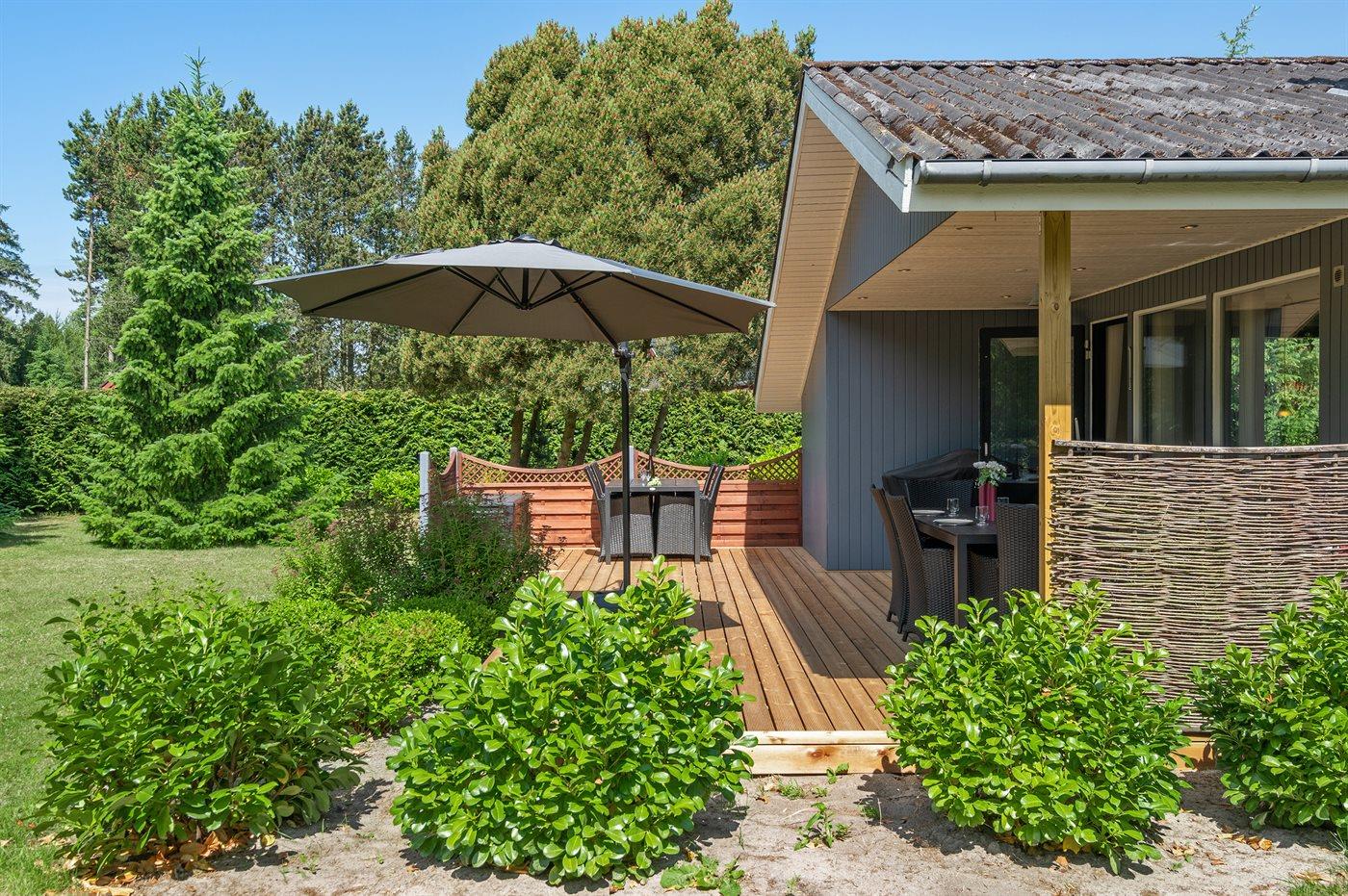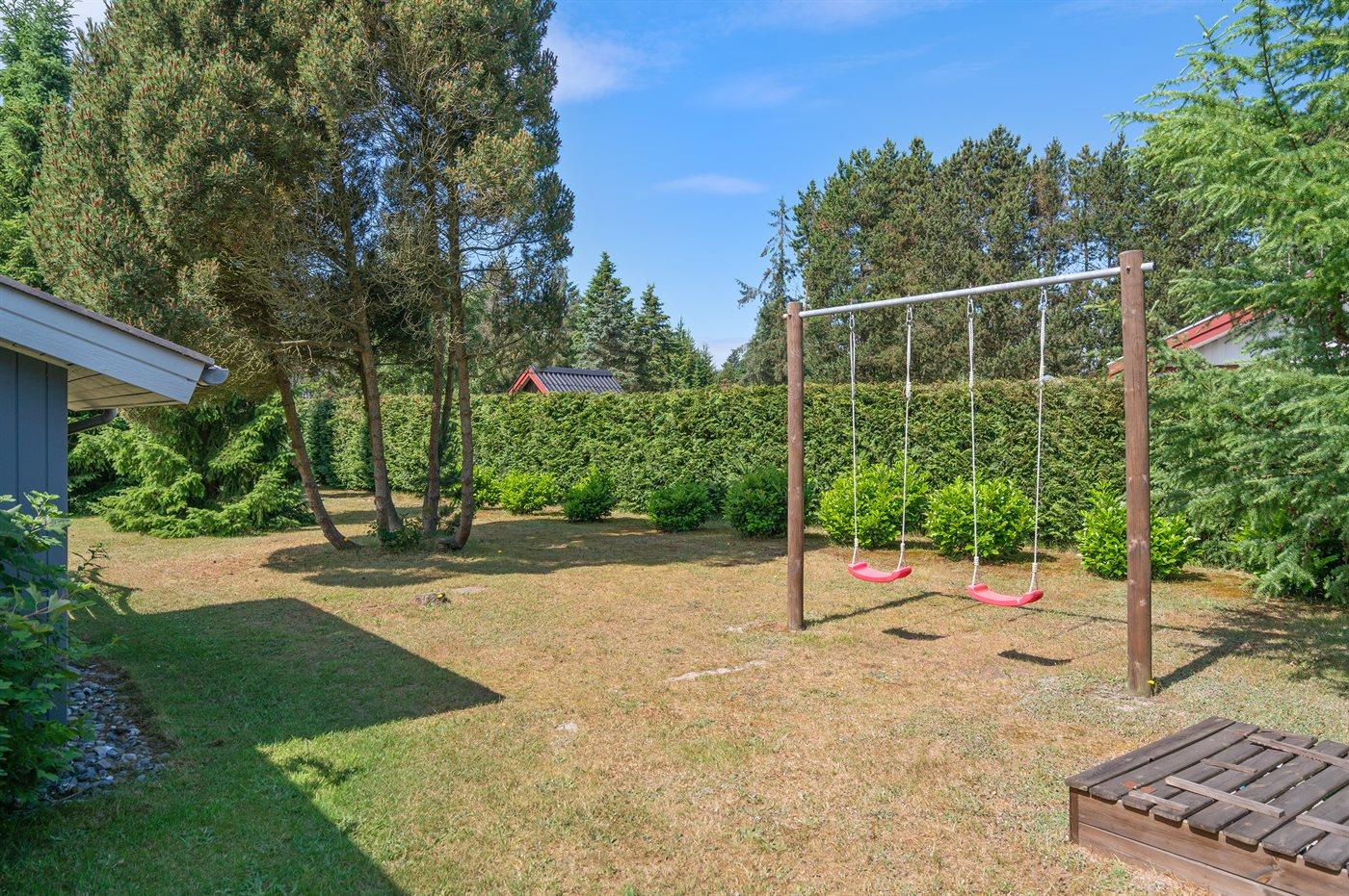 Ferieboligen er beliggende på en 1100 m² stor havegrund. Der er 900 m til havet. Nærmeste forretning er beliggende i en afstand af 2000 m. Til ferieboligen hører 10 m² terrasseareal. Desuden er der 8 m² overdækket terrasse. Gynge. Sandkasse. Der er carport til rådighed.
