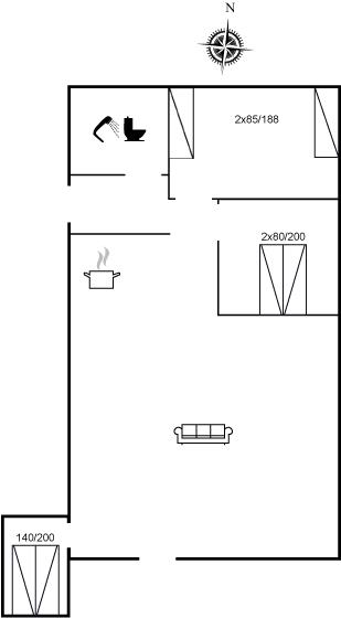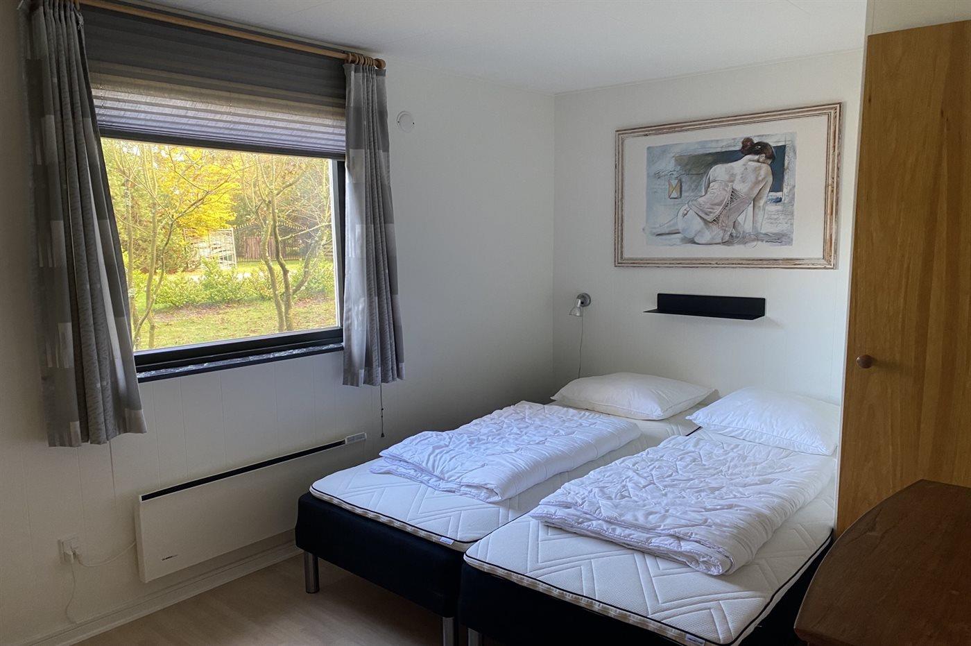 Der er i alt 3 soveværelser. Sovepladserne fordeler sig på: 6 sovepladser i dobbeltsenge. 2 sovepladser i enkeltsenge. 2 af disse sovepladser befinder sig i et anneks. Derudover er der 1 stk. barneseng.