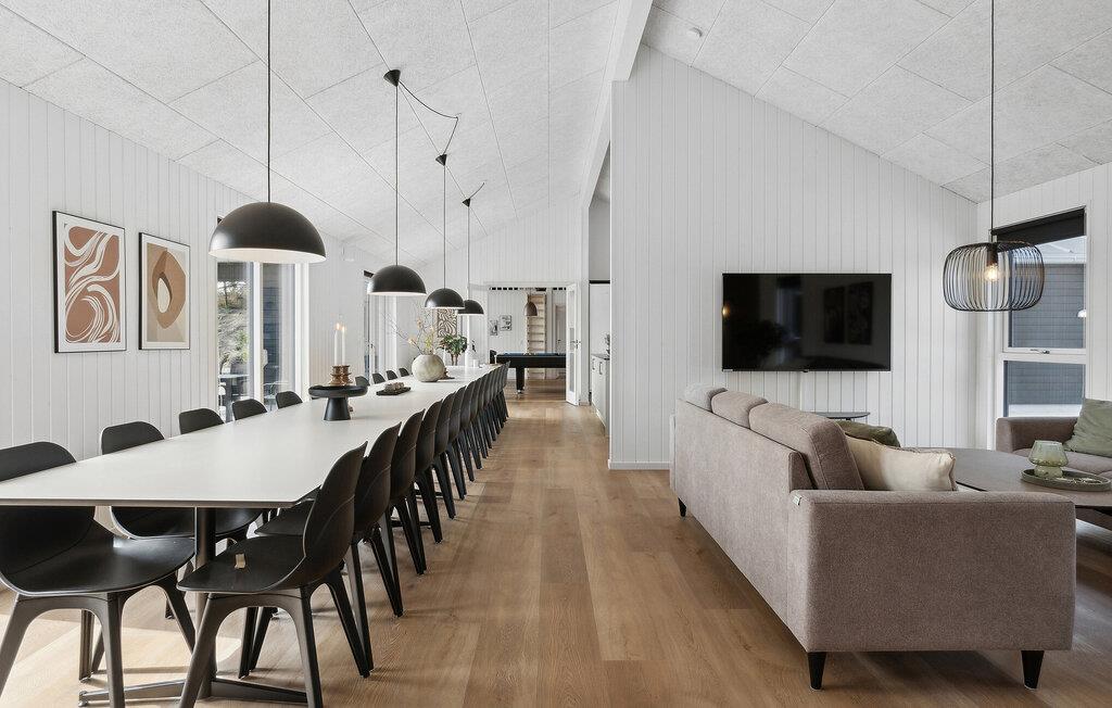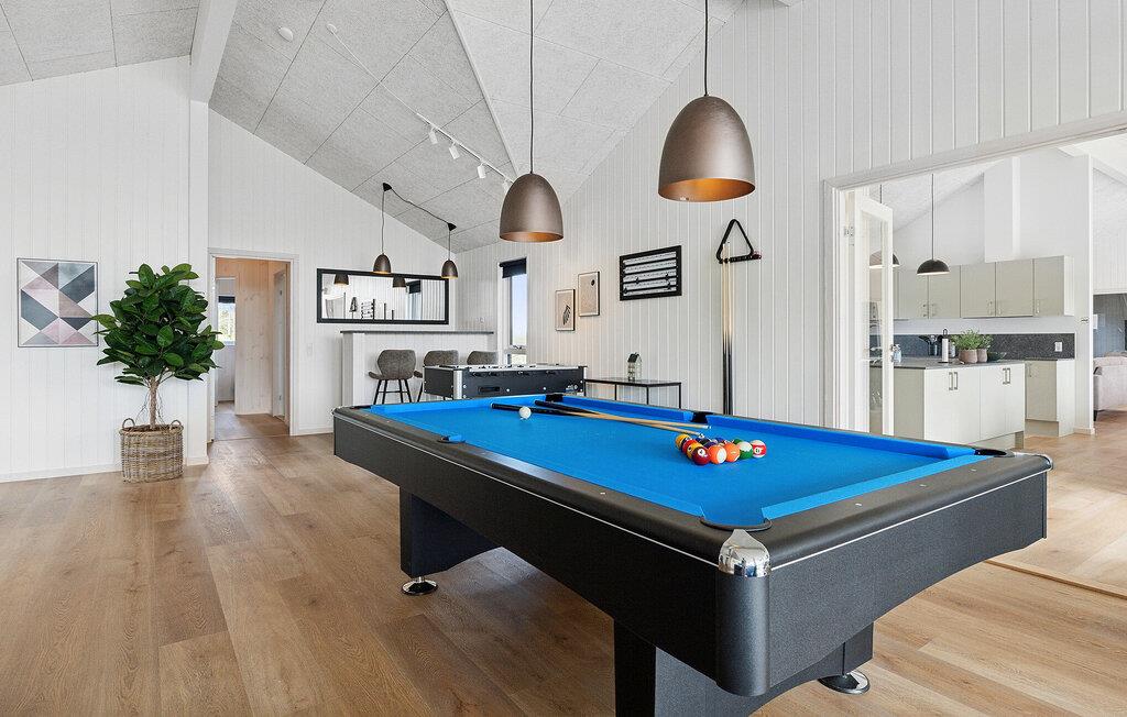 Dieses großzügige Haus ist ideal für Sie, wenn Sie mit mehreren Familien oder einer großen Freundesgruppe reisen. Es bietet zahlreiche Aktivitäten sowie ausreichend Platz für erholsame Momente. Entspannen Sie sich bei einer Tasse Kaffee im lichtdurchfluteten Innenbereich, erleben Sie vergnügten Badespaß im Innenpool oder ziehen Sie sich in die wohlige Wärme der Saune zurück. Wetteifern Sie beim Billard, Tischtennis und Dart oder verbringen Sie entspannte Abende vor dem Fernseher.
