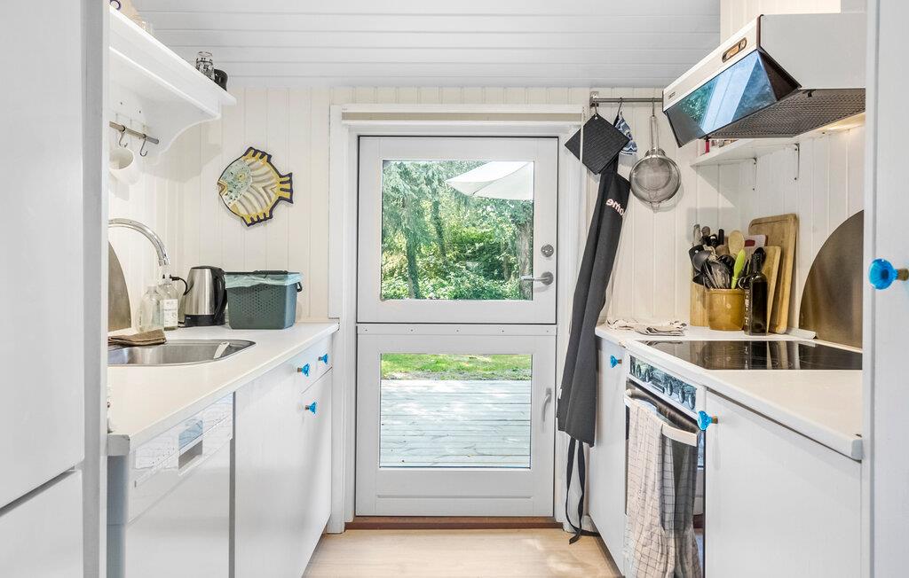 Dette karakterfulde hus kan fremvise lyse rum og fine indretningsløsninger med lænestole, en sofa og en knitrende brændeovn. De fine detaljer skaber en personlig atmosfære, hvor I straks føler jer velkomne. Læn jer tilbage i sofaen, mens I snakker, lytter til musik eller ser en film. Det moderne køkken lægger op til at lave mad sammen og tilbringe hyggelige timer med familien.