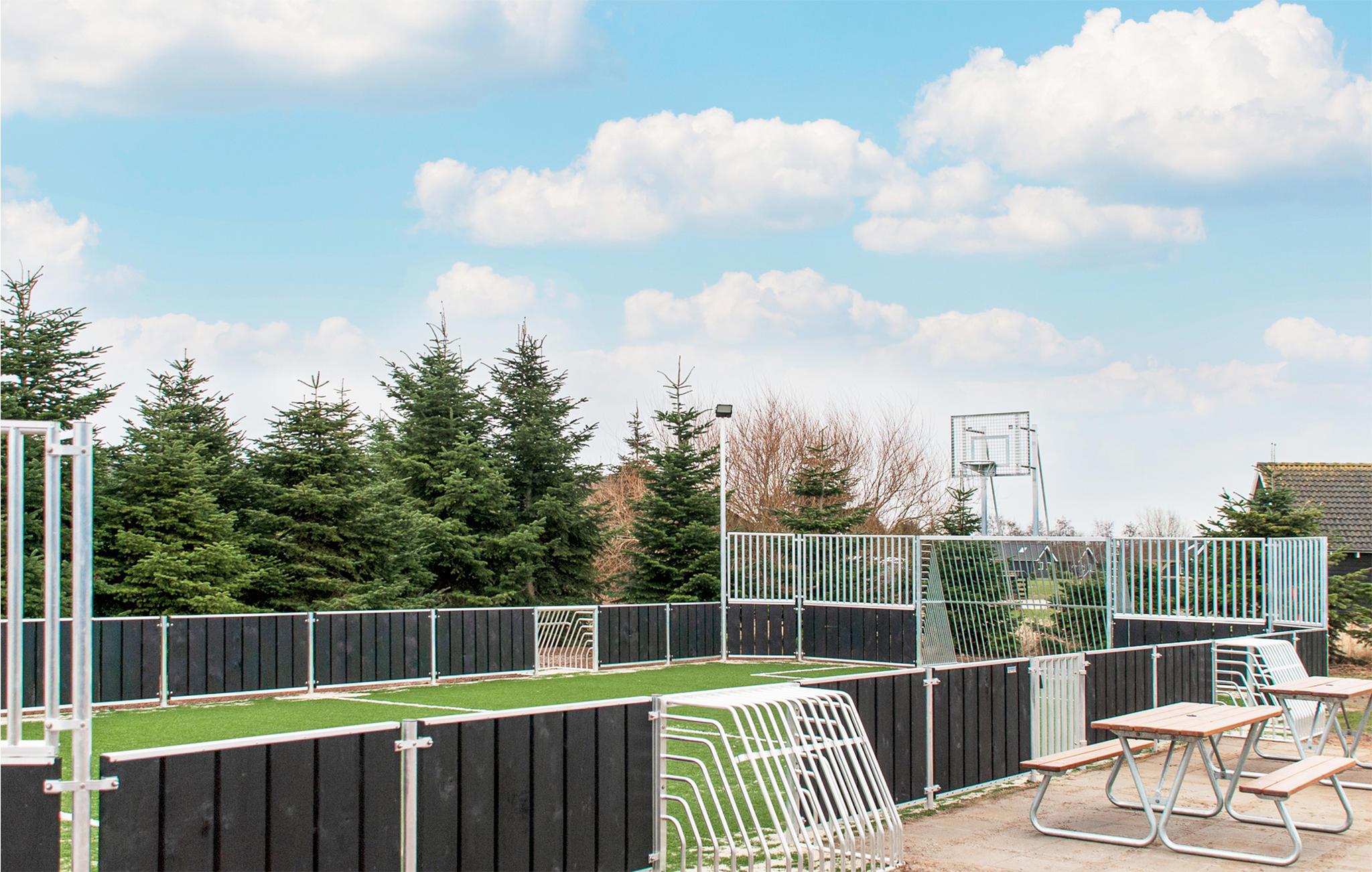 I vil helt sikkert bruge en masse af jeres tid udendørs, hvor i finder et væld af sjove aktiviteter. Multibanen med kunstgræs gør det muligt at udfolde jeres sportslige evner. De mange mål gør det muligt at spille på både små og store baner og vareiere mellem fodbold, basket eller noget helt tredje. I kan også se frem til at slappe af på solterrasserne med bord-bænke-sæt, inden I giver jer i kast med en volleykamp på den flotte beachvolleybane eller et spil kæmpeskak. Afslut en skøn dag med hygge omkring bålet, mens I bager snobrød eller rister skumfiduser.