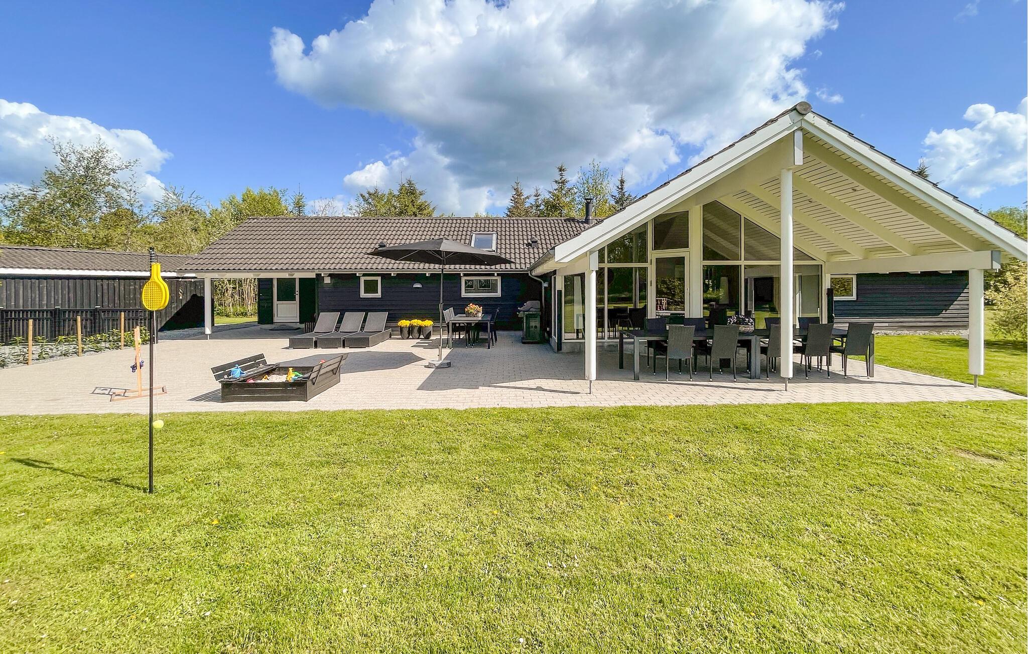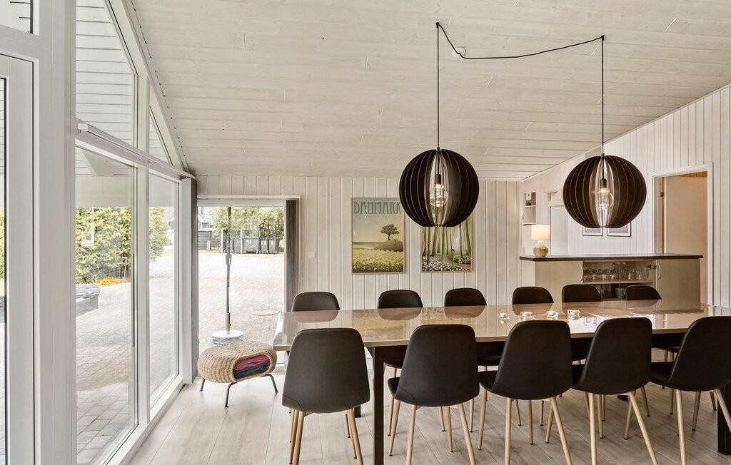 Glæd jer til at holde ferie i dette luksuriøse sommerhus, hvor der er plads til en stor familie eller gruppe på op til 14 personer. Her kan alle samles om det lange spisebord, eller I kan spille spil og hygge jer i sofaarrangementet. I kommer aldrig til at kede jer i dette hus, for det er godt udstyret med blandt andet billardbord, spabad, bordtennis og dart.
