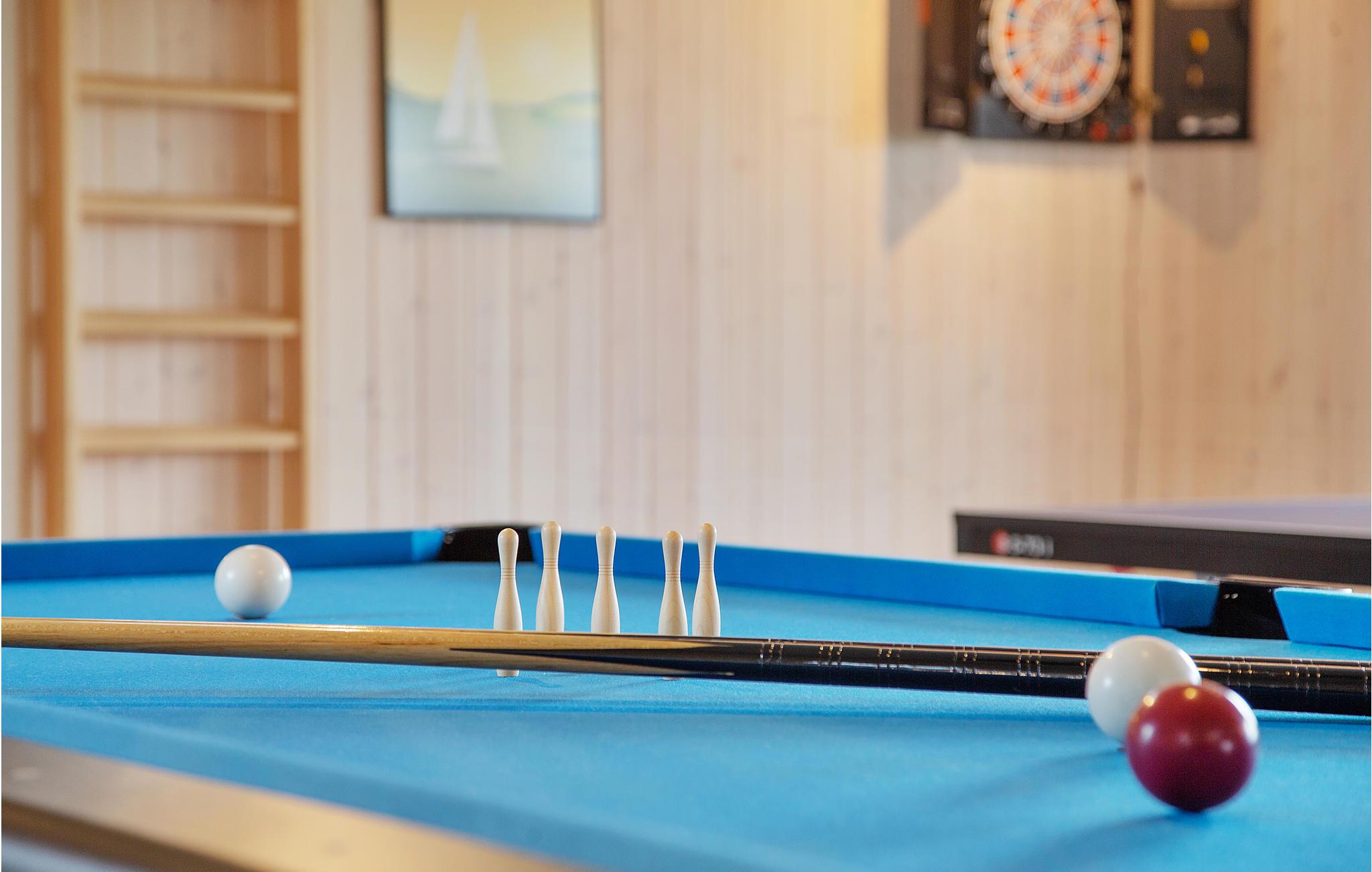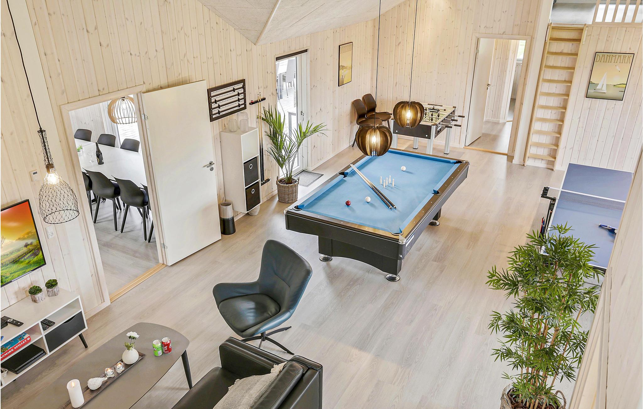 Et populært aktivitetsferiehus med 8 gode soveværelser, en hems og 4 lækre badeværelser. I den store entré er der god plads til alt jeres overtøj. Huset er udstyret med komfortable møbler, og har alt det udstyr, der skal til, for at I føler jer hjemme. Det indeholder et lækkert kombineret stue/køkken/alrum, der ligger midt i huset, og automatisk bliver jeres samlingssted om madlavningen og hyggelige stunder foran brændeovnens knitrende ild. Aktivitetsrummet ligger ved siden af stuen og har masser af aktiviteter. I alle opholdsrum er der ekstra lydisolering.