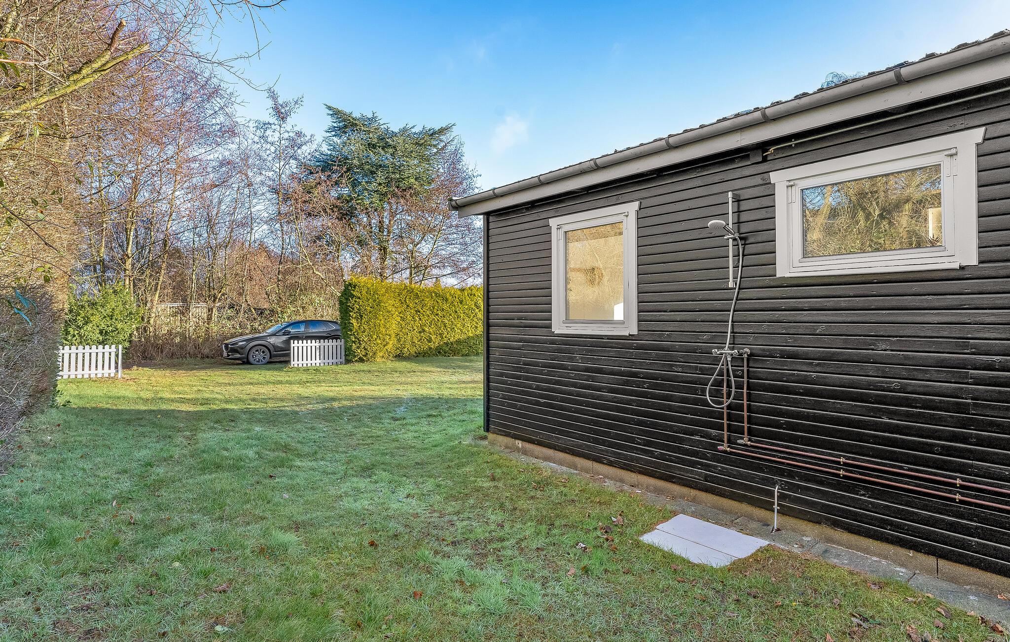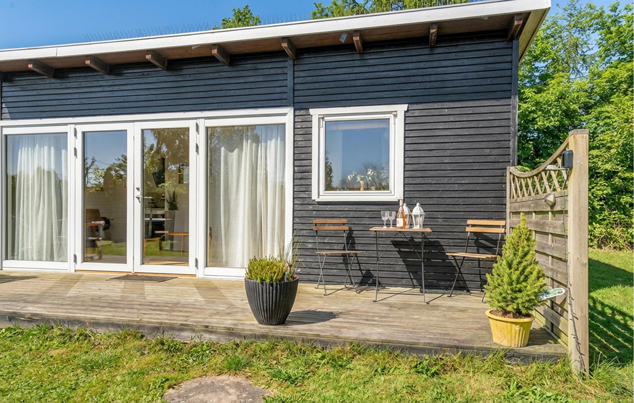 Hyggeligt træhus nær stranden i Marielyst med terrasse, internet og plads til kæledyr.
