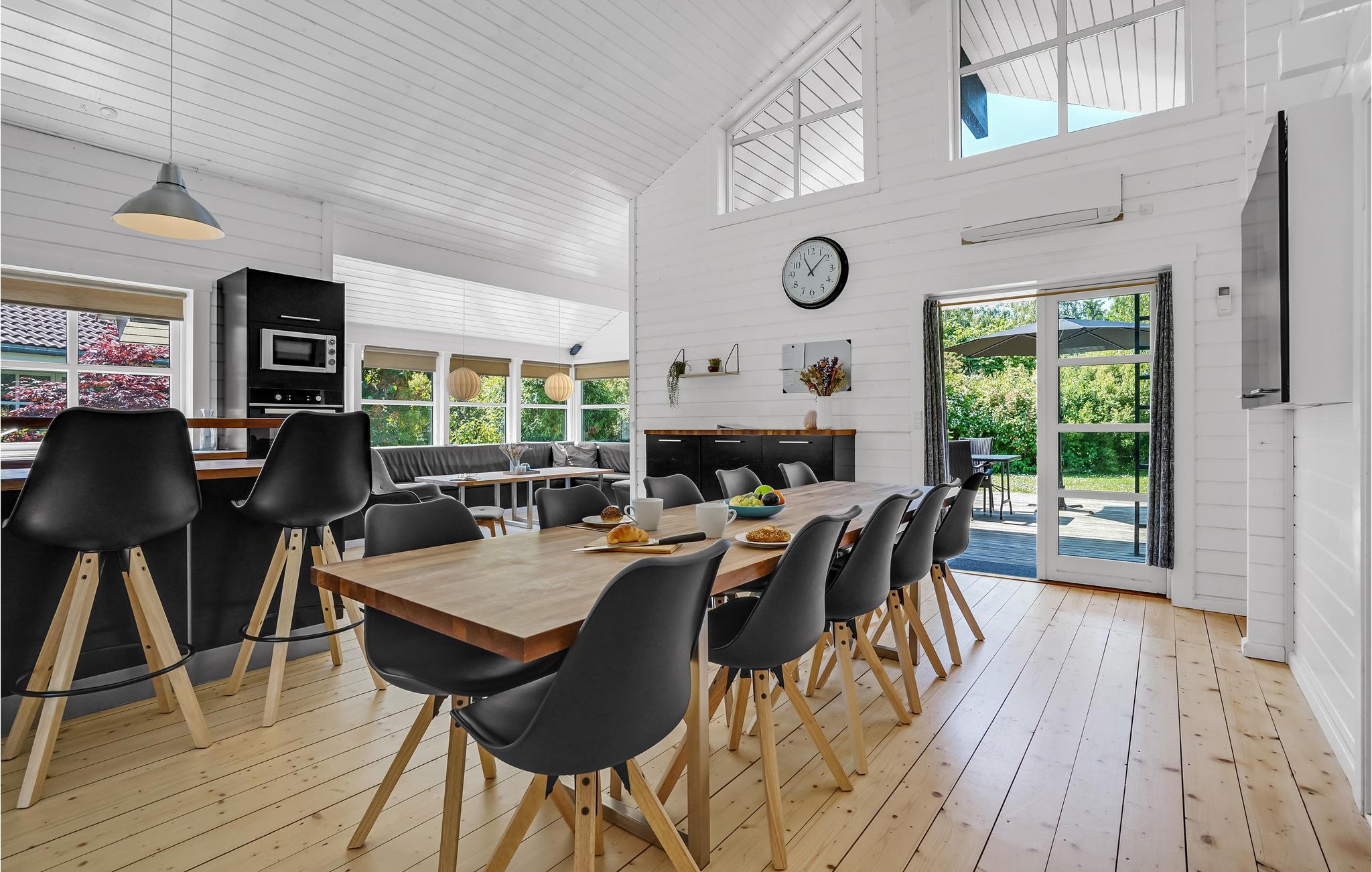 Rummeligt fuldtømmerhus bygget af de bedste materialer. Huset er omgivet af en stor terrasse, hvor I kan nyde solen om morgenen og tænde grillen, når aftensmaden skal tilberedes. Huset er indrettet med to badeværelser, det ene er udstyret med spabad og sauna. Der er god plads i stuen, der også indeholder det åbne køkken. Huset ligger i gåafstand til et shoppingcenter og områdets øvrige aktiviteter. Et godt feriehus til både familieferie men også til to, der gerne vil have rigtig god plads. Her kan I holde en dejlig ferie uanset årstiden.