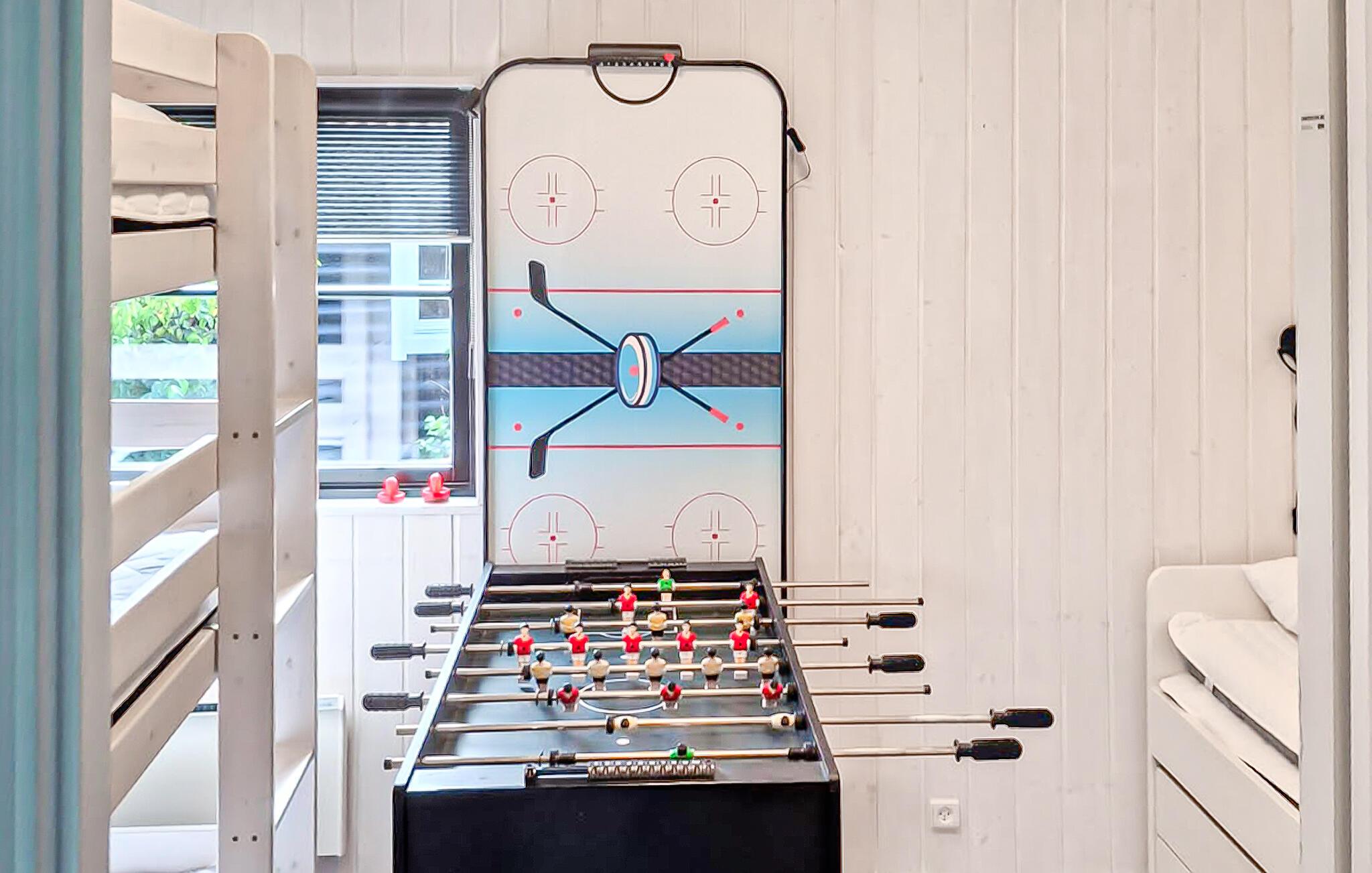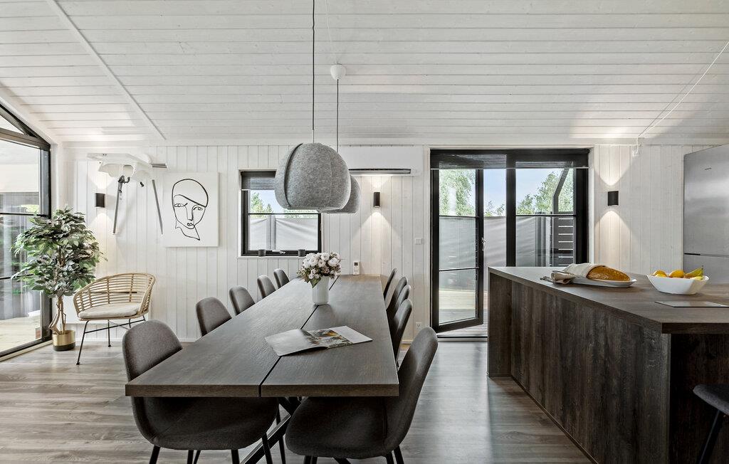 Hold jeres næste ferie i en af ??Danmarks dejligste feriedestinationer. Dette rummelige feriehus i Marielyst har alt, hvad I skal bruge til en afslappende ferie. Begynd dagene med en solid morgenmad rundt om det lange spisebord i ??det åbne fællesrum og nyd husets elegante, stilrene rammer. Senere kan I læne jer tilbage i spabadet på terrassen, mens børnene render rundt i haven og hviner af fryd på gyngerne eller trampolinen. Snup en sjov fodboldkamp med hele familien eller tag en dyst i et spil airhockey indendørs, hvor der også er et ekstra spabad.