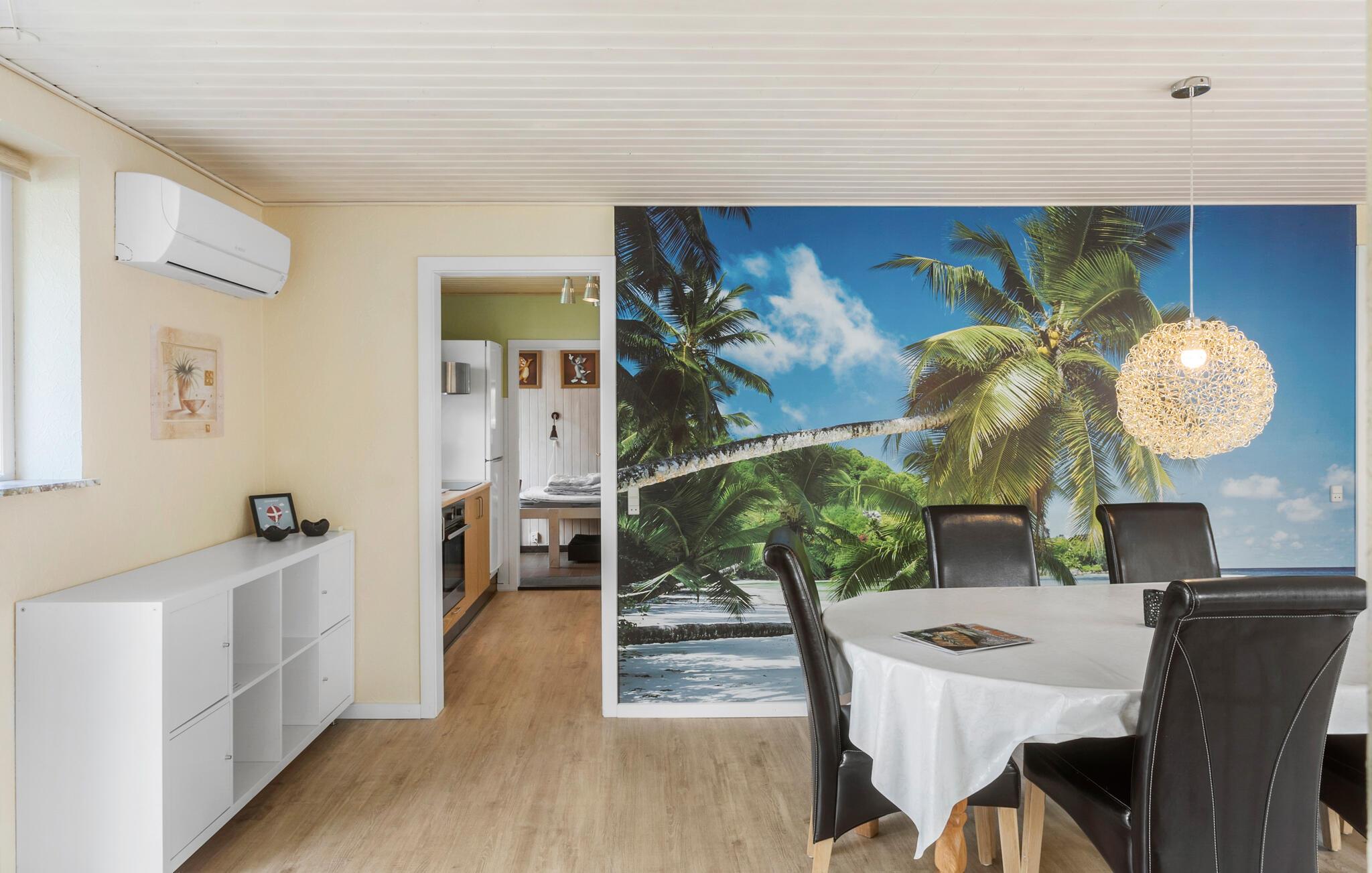 Alle kan se frem til en ferie, hvor man kommer helt ned i tempo, for dette skønne sommerhus har en dejlig ro. Her kan I se frem til en varm og personlig stil med komfortable indretningsløsninger og et behageligt lysindfald fra vinduerne. På en smuk kold forårsdag er det hyggeligt at sætte sig med te og brætspil i udestuen.