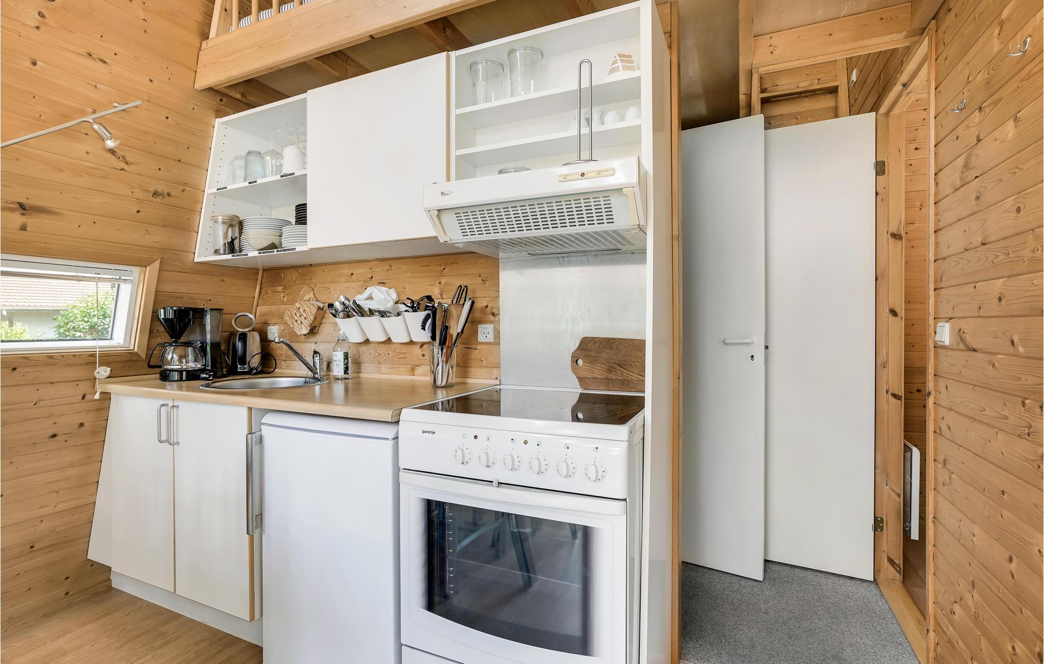 I det attraktive ferieområde Marienlyst finder I dette originalt indrettede feriehus. Det praktisk indrettede interiør er kendetegnet ved de mange træelementer og fremstår åbent og indbydende. De store vinduespartier og ovenlysvinduerne sørger selv op overskyede dage for et godt lysindfald i opholdsrummet og skaber en behagelig atmosfære. Nyd godt af hemsen, som tilbyder to hyggelige sovepladser og giver et kig ud på træerne og himlen. Dette feriehus er ideelt til en lille familie eller et par, der søger en afslappende ferie.