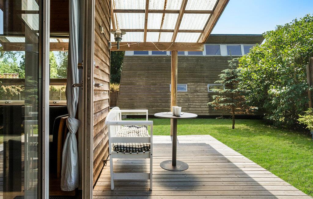 Den overdækkede terrasse indbyder til skønne timer i det fri. Nyd dagesn første kop kaffe i solskinnet, og sæt jer til rette om eftermiddagen med ferielæsning, mens børnene og jeres kære, firbenede ven leger i den friske luft.