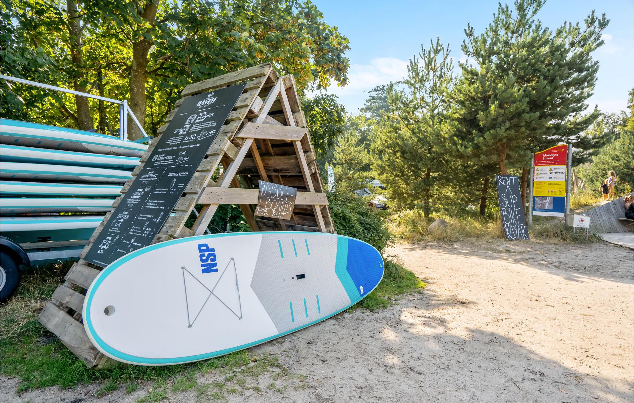 I bor kun få minutters gang fra sandstranden, der starter cirka 50 m fra huset, gå det sidste stykke gennem sandet ned til det klare hav, som indbyder til en forfriskende dukkert. Der er heller ikke langt til Marienlyst, som byder på restauranter, butikker, caféer og alt, hvad I har brug for til en vellykket ferie. Gå ture langs den delvist skovklædte kyst eller lav en lille udflugt til naturreservatet Bøtø Nor, hvor I kan iagttage fuglelivet. Hele området er velegnet til børnefamilier og familier med hunde.
