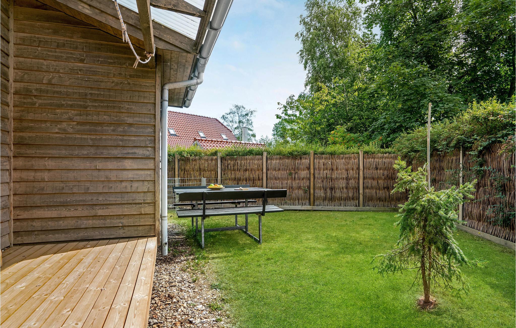Den overdækkede terrasse indbyder til skønne timer i det fri. Nyd dagesn første kop kaffe i solskinnet, og sæt jer til rette om eftermiddagen med ferielæsning, mens børnene og jeres kære, firbenede ven leger i den friske luft. På fællesgrunden finder I en 200 m² indhegnet have.