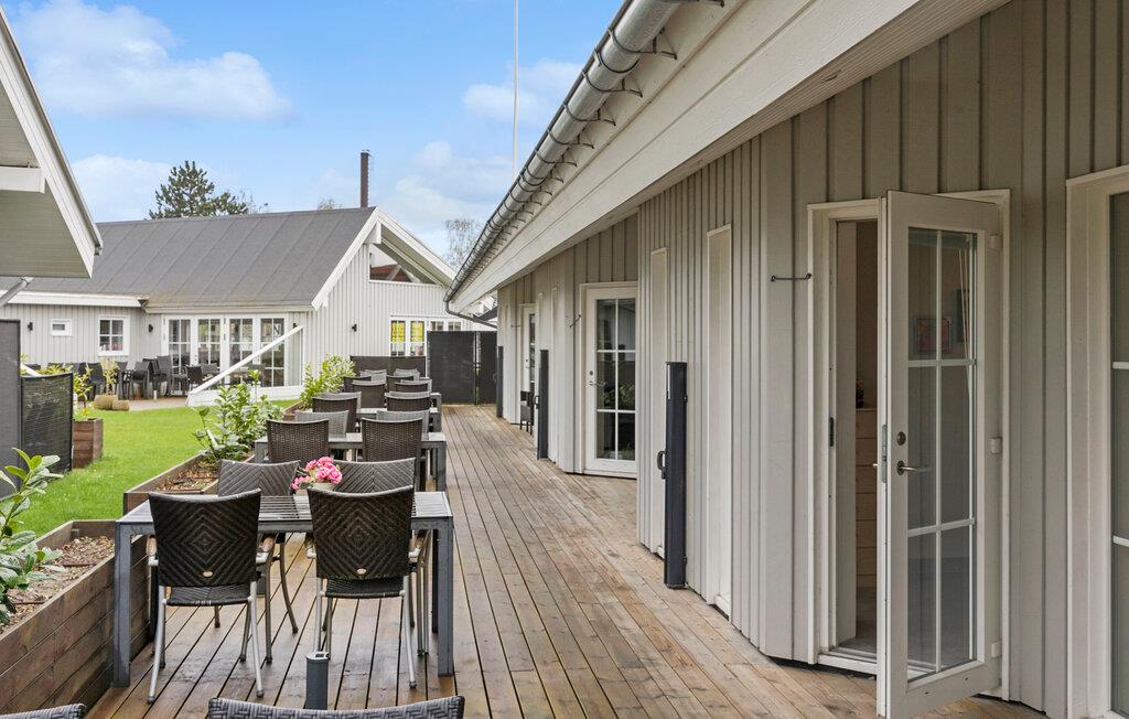 Hvis I gerne vil gøre terrassen lidt mere privat, kan I trække ud i den mobile skillevæg. Og hvis ikke, kan I falde I snak med naboerne og høre, om de har nogle gode fifs til ferien på det sydlige Falster.