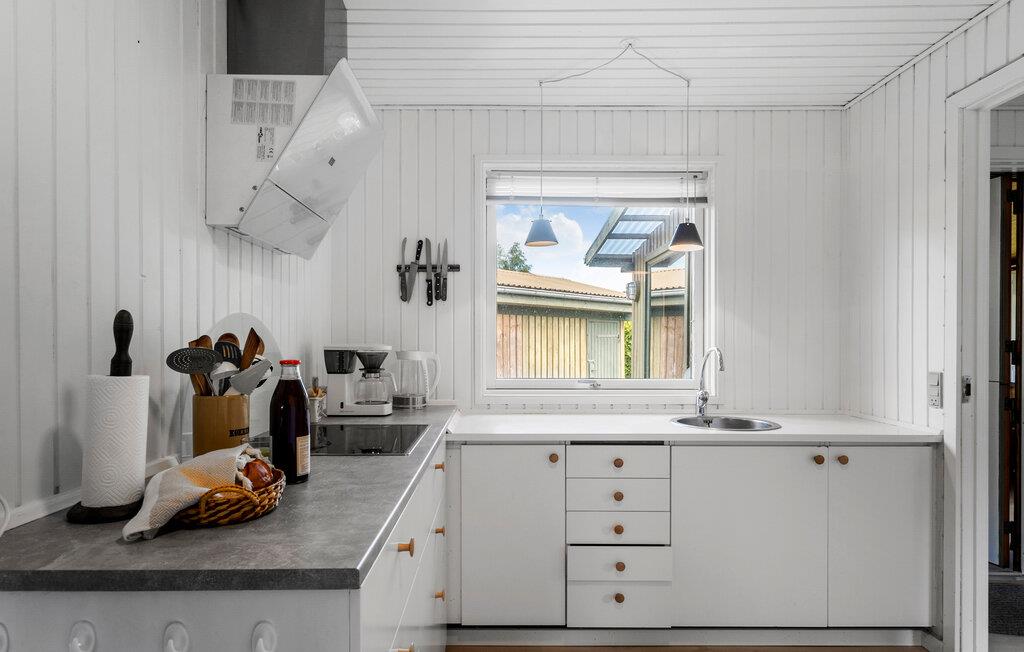 Velkommen til Falsters smukke natur, som kan få alle helt ned i tempo. Her venter dette fine sommerhus. Køkkenet giver jer gode rammer til fælles madlavning og kulinariske ferieeksperimenter. Den hyggelige opholdsstue er udstyret med komfortable lænestole og en stor hjørnesofa, så her kan I fylde aftenerne med hyggestunder, hvor I samles om film, brætspil og lækre snacks. Indretningen er både funktionel og klassisk, så her kan alle sænke skuldrene og koncentrere sig om at holde fri. Når vejret er lunt, kan I rykke ud på den solrige terrasse eller spille bold på græsplænen. Udestuen er skøn til de solrige dage med kølige temperaturer, og vender I hjem fra en frisk gåtur, kan I gøre det ekstra stemningsfuldt med ild i brændeovnen.