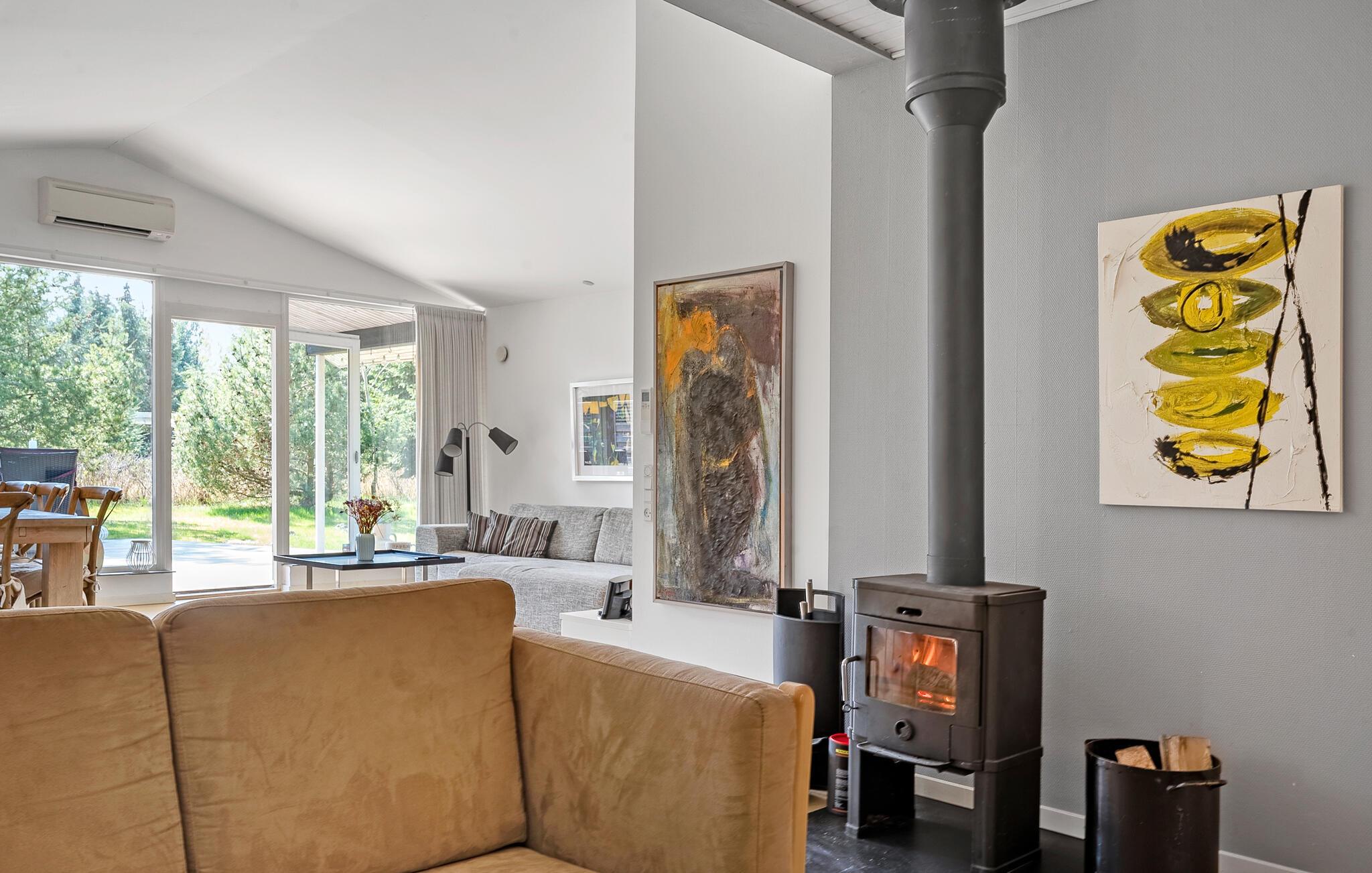 Hyggeligt feriehus i Marielyst med aktivitetsrum, brændeovn og tæt på stranden.