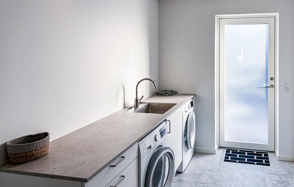 Glæd jer til en dejlig bolig, der er kendetegnet af højt til loftet, store vinduer, rene linjer og nordisk design. Sæt jer til rette i den lyse opholdsstue med komfortable siddepladser og lad blikket vandre gennem gulv til loft-vinduerne ud på den omkringliggende natur. Brug den åbne spisestue med det lange bord til fælles måltider, spilleaftener eller lange samtaler. Tilbered jeres måltider i det elegante køkken med rigelig bordplads, moderne apparater og generøs opbevaringsplads.