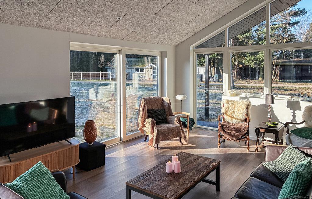 Der er lagt op til et skønt ophold i dette moderne feriehus med masser af plads, luft, lys og ro.