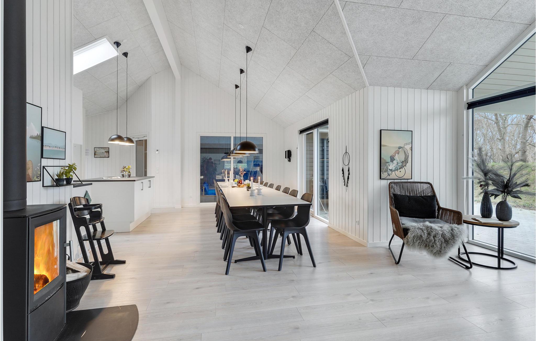 Beliggende lige bag diget og nogle få skridt fra den børnevenlige strand, giver jer dette luksuriøse feriehus masser af plads til hyggelige familiesammenkomster. Sæt gang i madlavningen og glæd jer til dejlige måltider med venner og familie. Mens nogle nyder bordfodbold, billard eller bordtennisbordet, kan I forkæle jer selv med afslappende øjeblikke i saunaen eller spabadet – eller lære jeres yngre gæster at bade i den indendørs pool. Spil PlayStation eller snak over et glas vin ved den knitrende brændeovn.