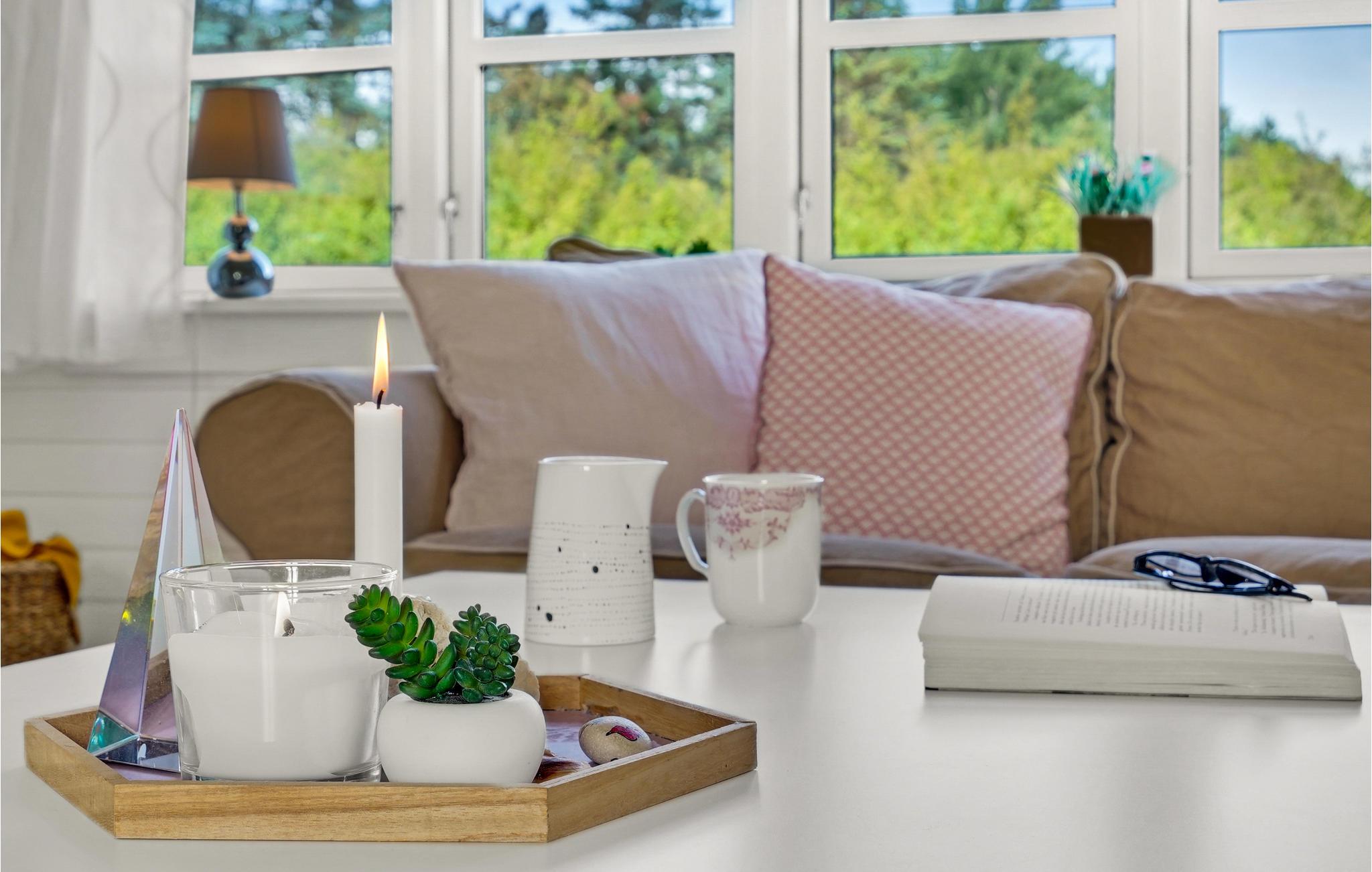 Tag familien og jeres elskede firbenede ven med på tur og flyt ind i dette kompakte og meget hyggelige feriehus. De dejlige indbydende udstråler en hyggelig atmosfære, hvor I kan slippe hverdagens bekymringer. Den smukke overdækkede terrasse inviterer jer til at nyde feriens måltider i den friske luft og om aftenen kan I tænde lysene og tilberede jeres yndlingsretter på grillen.