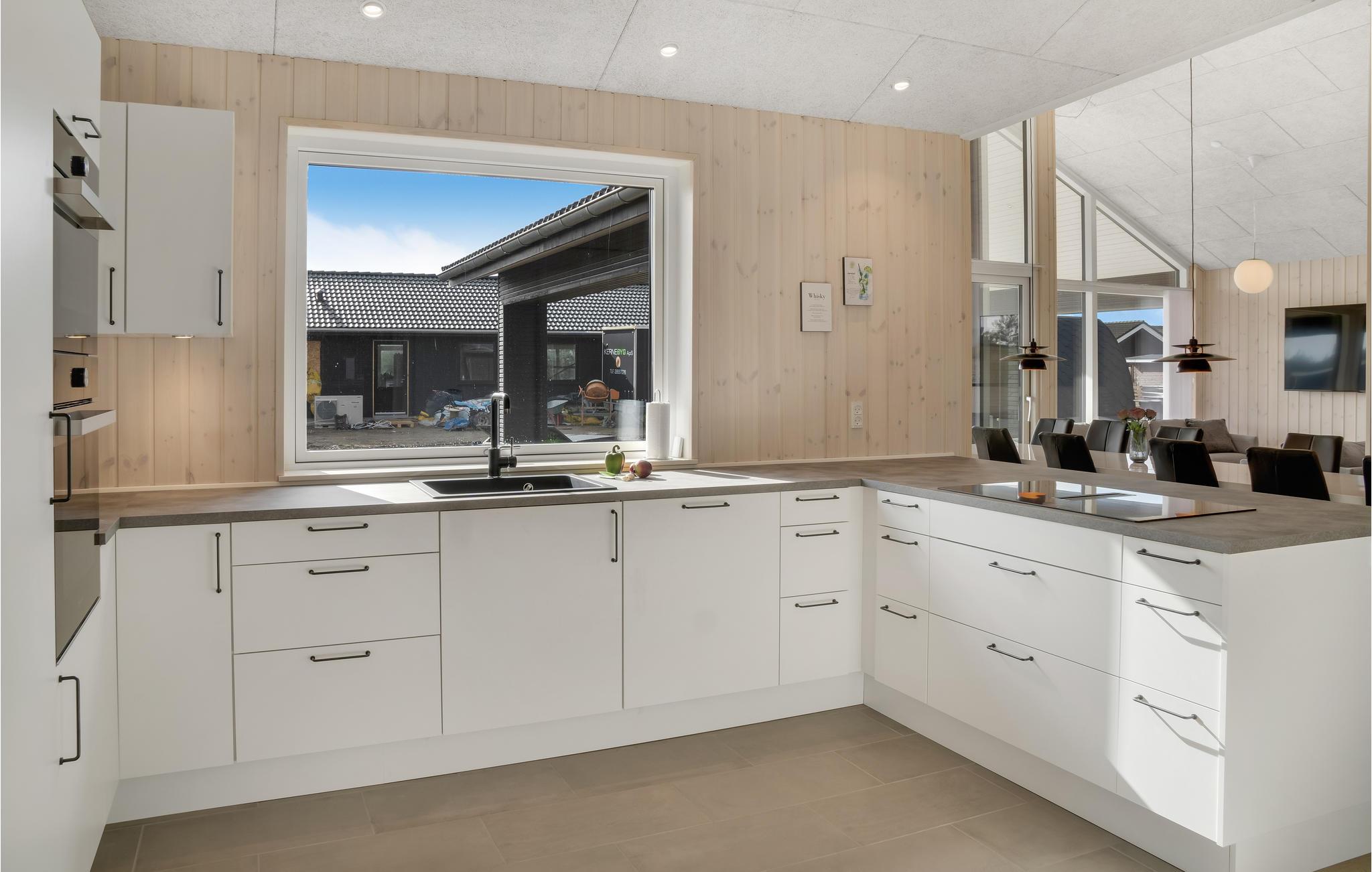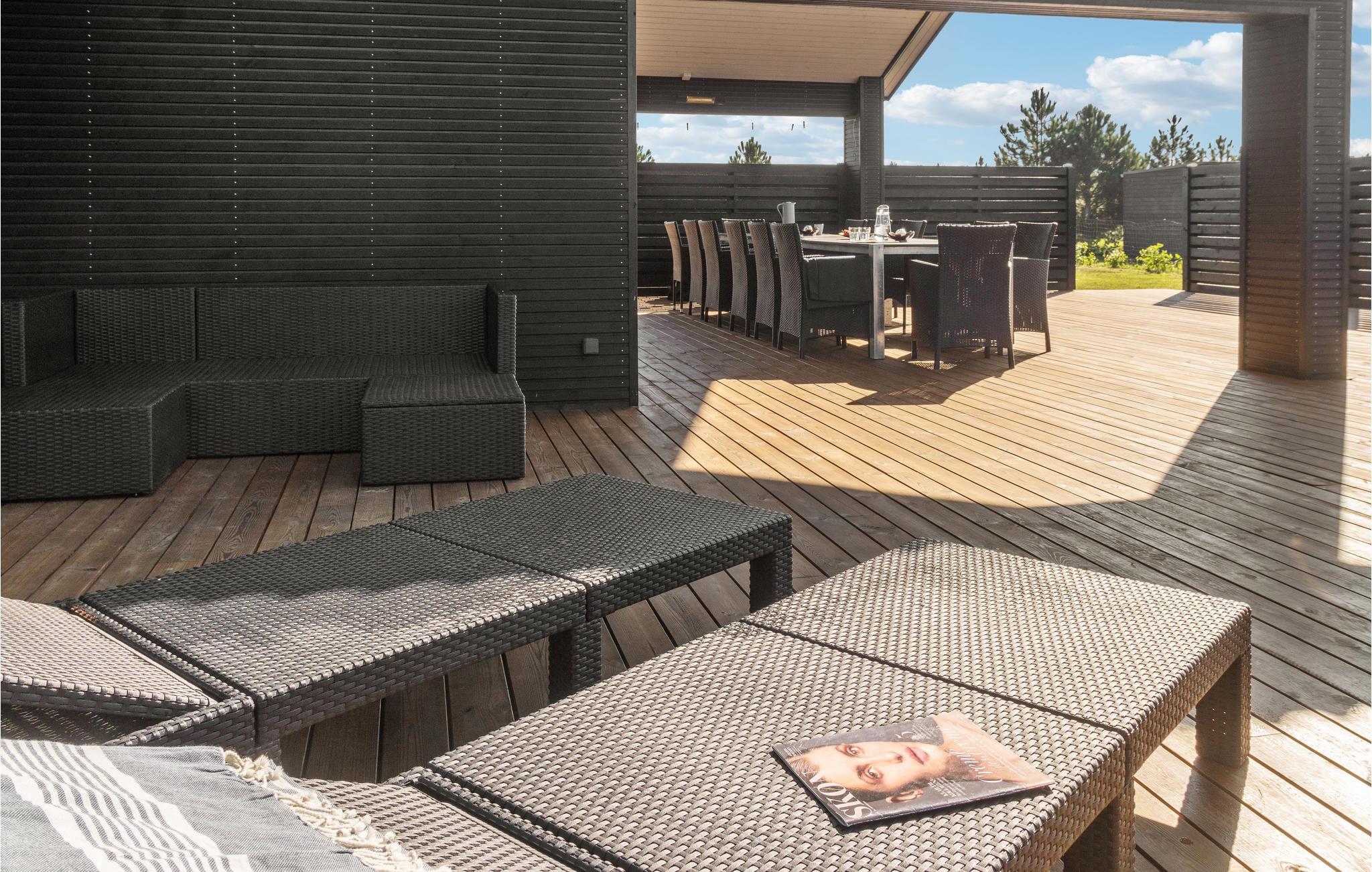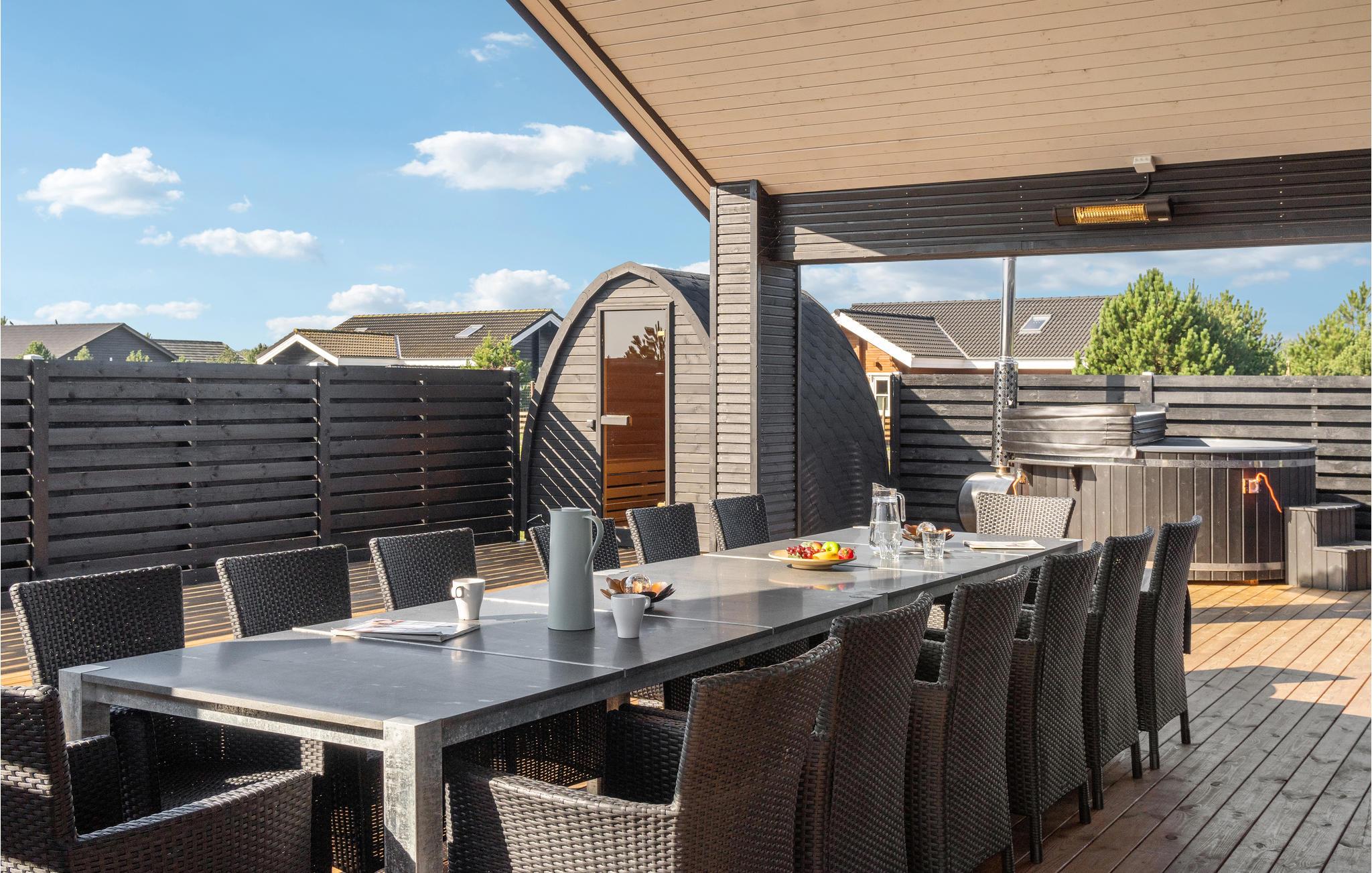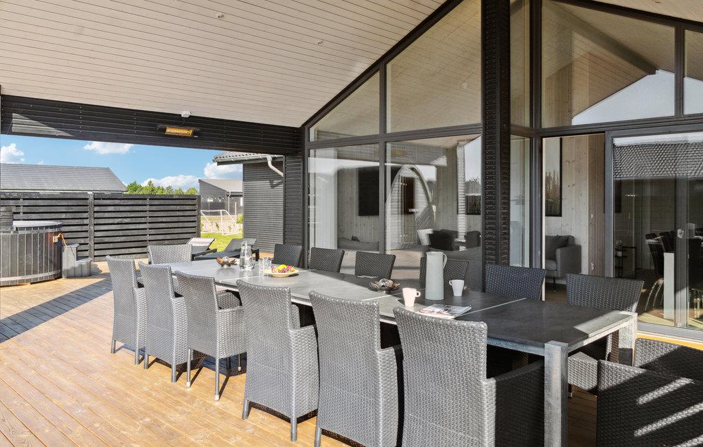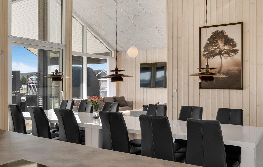 I de lyse værelser i dette komfortable hus kan I slappe af med hele familien i stilfulde omgivelser. Den moderne indretning sikrer en hjemlig atmosfære, mens vinduesfronten sørger for et smukt dagslysindfald i opholds- og spisestuen. Nyd måltiderne sammen ved det lange spisebord og få derefter gang i cirkulationen med et spil billard. Senere kan I sætte jer godt til rette i sofaen, og slappe af efter en skøn dag på stranden eller på udflugt. Rund dagen af med en tur i saunaen, hvor I kan sidde behageligt sammen og komme helt ned i gear. Nyd solen på terrassen, læs en god bog og slap helt af, inden I fremtryller et lækkert måltid på grillen til hele familien.