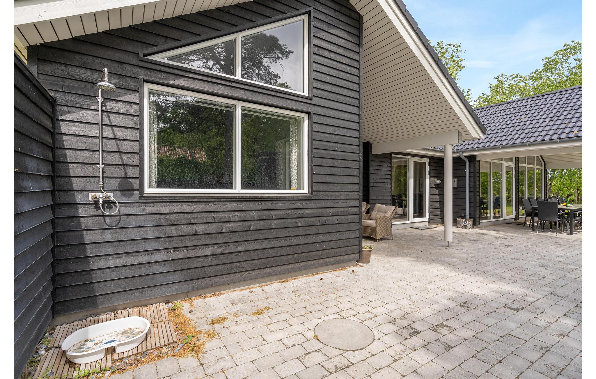 Når vejret er godt, kan I nyde dagens måltider på den hyggelige og delvist overdækkede terrasse, hvor der også er grill. Hop i det udendørs boblebad og afslut dagen med en afslappende tur i saunaen. Børnene kan se frem til mange timers sjov med trampolinen og sandkassen. Hvis vejret ikke passer til udendørsaktiviteter eller en svømmetur på stranden, kan I bruge poolen i sommerhusets wellness-sektion. I kan spille bordtennis, billard og dart i husets aktivitetsrum.