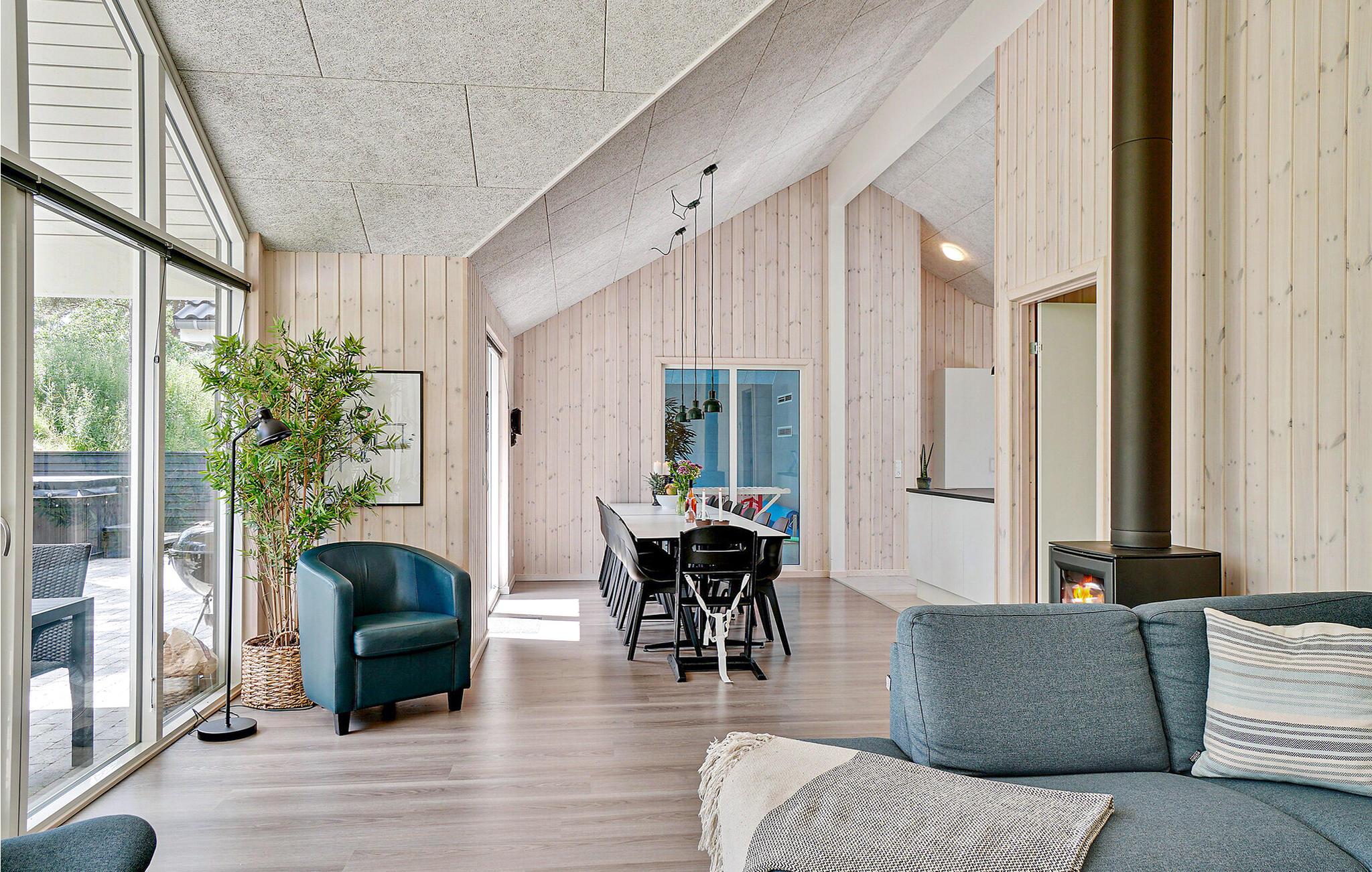 Feriehuset er ideelt til et familieophold og giver mulighed for at tilbringe afslappende dage sammen. Huset er godt indrettet med to soveområder og en hems, og der er tilknyttet badeværelser til soveområderne, så det er nemt at fordele sig, når I alle sammen skal af sted. Midt i huset ligger det åbne køkkenområde, hvor der er plads til, at I kan gøre madlavningen til et fællesprojekt. I kan nyde maden rundt om det lange spisebord.