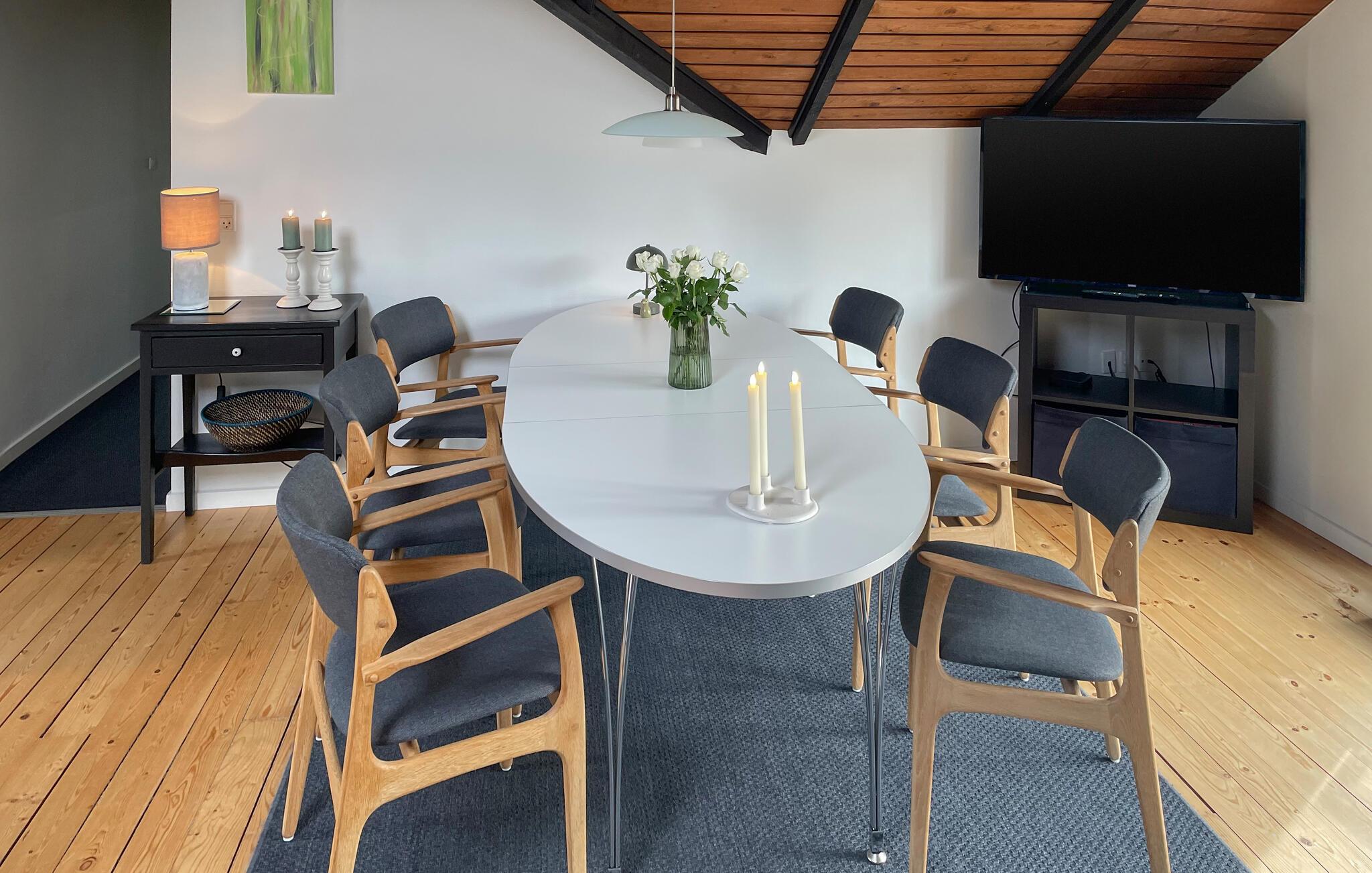 Dette sommerhus byder på skønne rammer for en ø-ferie med hele familien. Her er plads til fælles oplevelser, afslappende timer og hyggeaftener. Beliggenheden er ideel, fordi den smukke sandstrand Marielyst på Falster ikke ligger langt fra jeres hus og lægger op til afslappende dage ved vandet. Nyd den unikke natur og læg hverdagen bag jer. Begynd dagene i det rummelige køkken og tilbered en lækker morgenmad sammen. Det smukke spisebord er det ideelle sted til hyggelige måltider og planlægning af dagens aktiviteter.