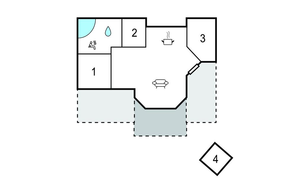 Huset indeholder tre gode soveværelser samt en stor hems. Dejligt åbent køkken, som tillader udkig over stuen og spisehjørnet. Pænt badeværelse med adgang til sauna og spa. Udvendigt er der gode træterrasser, som indbyder til solbadning om dagen og ikke mindst hyggelige grillaftener på lune sommeraftener. Udespaet til 6 personer tilbyder ekstra komfort og afslapning.