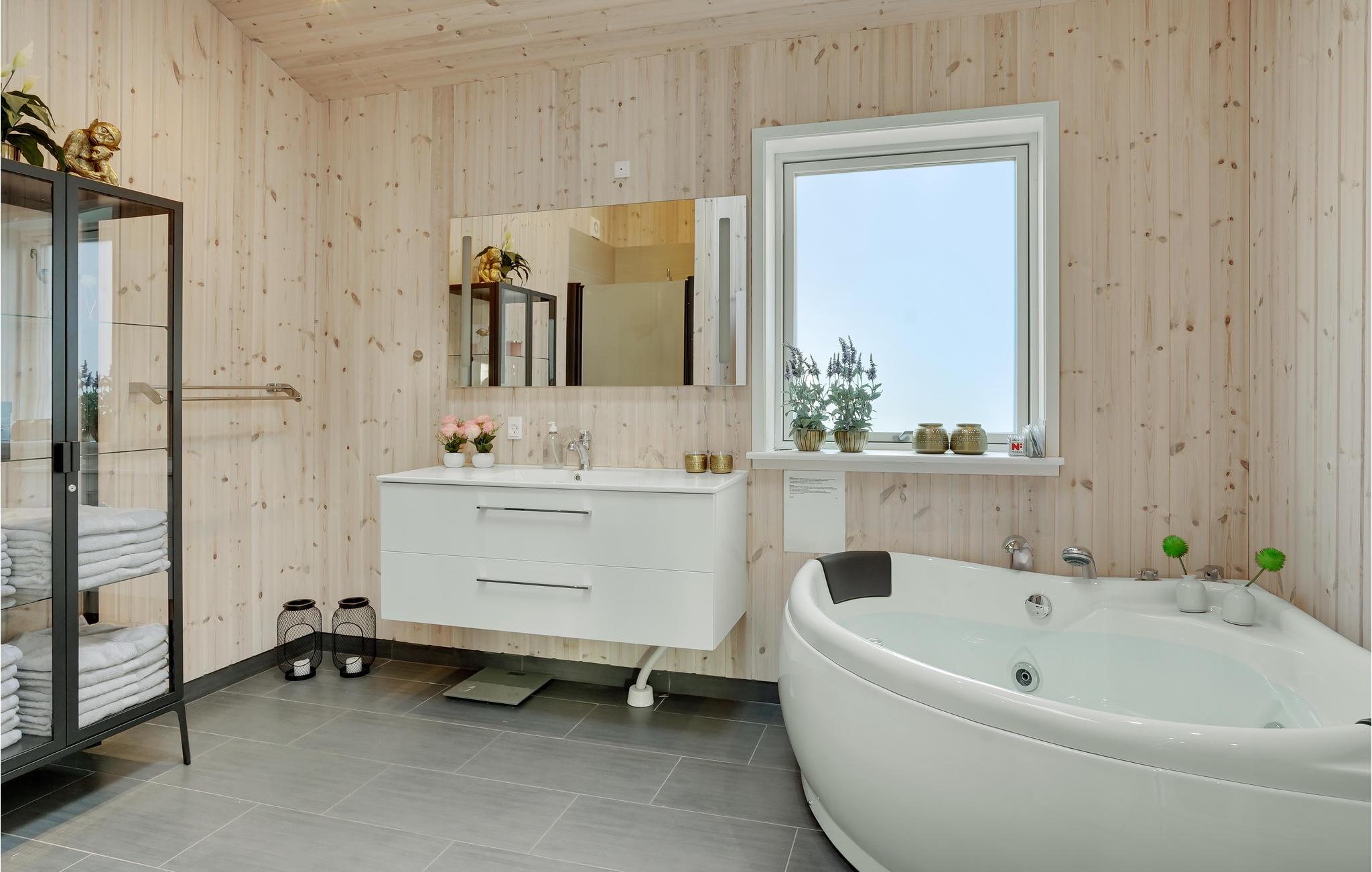Husets ejer har lavet en masse aktivitetsmuligheder både inde og ude, så I kommer ikke til at kede jer. Feriehuset er indrettet med fire soveværelser og to badeværelser, og er dermed yderst velegnet til to familier. Spabadet står i det ene af badeværelserne. Den store, lyse stue med komfortable møbler ligger i forbindelse med det veludstyrede køkken. Fra stuen er der udgang til den store, afskærmede træterrasse, hvor I kan nyde solen og tilberede aftensmaden på grillen, inden I hopper i vildmarksbadet, måske med et glas champagne og udsigt til stjernehimlen.
