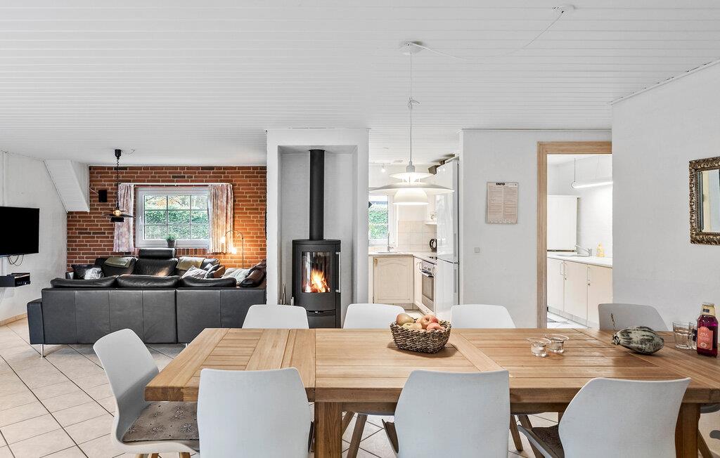 Der er lagt op til en fantastisk ferie for alle familiemedlemmer i dette velindrettede hus, hvor alle kan slappe af på hver deres måde. Huset er lyst og rummeligt med hyggelige detaljer som de røde murstenvægge og gode hjørner, hvor man kan samles om brætspil og måltider. Både børn og voksne får rig mulighed for at være i vandet, for huset er indrettet med en stor pool samt spabad - og så er der sauna, hvis I skal have varmen efter en frisk gå- eller svømmetur.