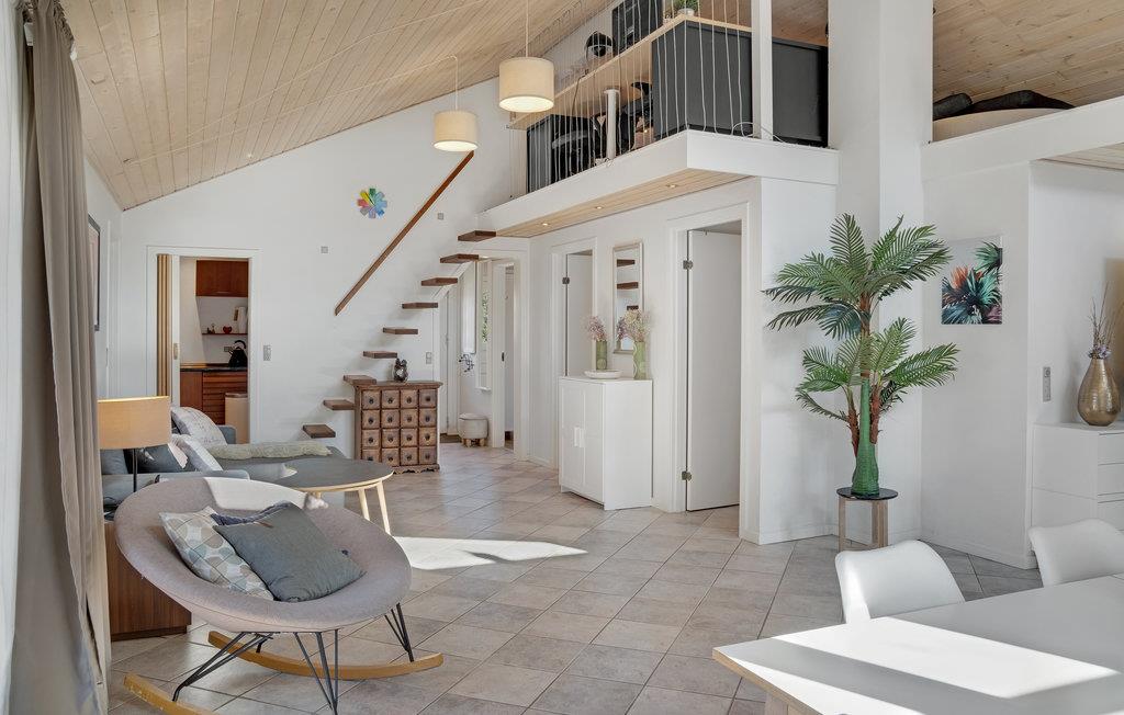 I de lyse rum i dette komfortable sommerhus kan I slappe af med hele familien i stilfulde omgivelser. Den moderne indretning sikrer en hjemlig atmosfære, og de mange sprossede vinduer tillader et smukt lysindfald i husets opholdsstue. Lav mad her med udsigt til det fri og nyd måltiderne sammen ved det lange spisebord. Føl jer tilpas senere i den rummelige sofa, efter en dejlig dag på stranden eller på en udflugt. Rund dagen af med en tur i saunaen, hvor I kan sidde behageligt sammen og komme helt ned i gear.