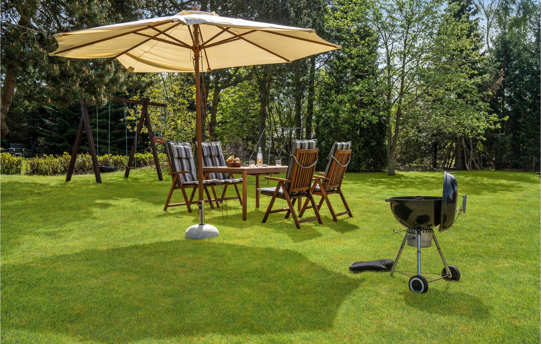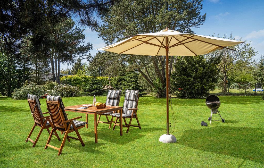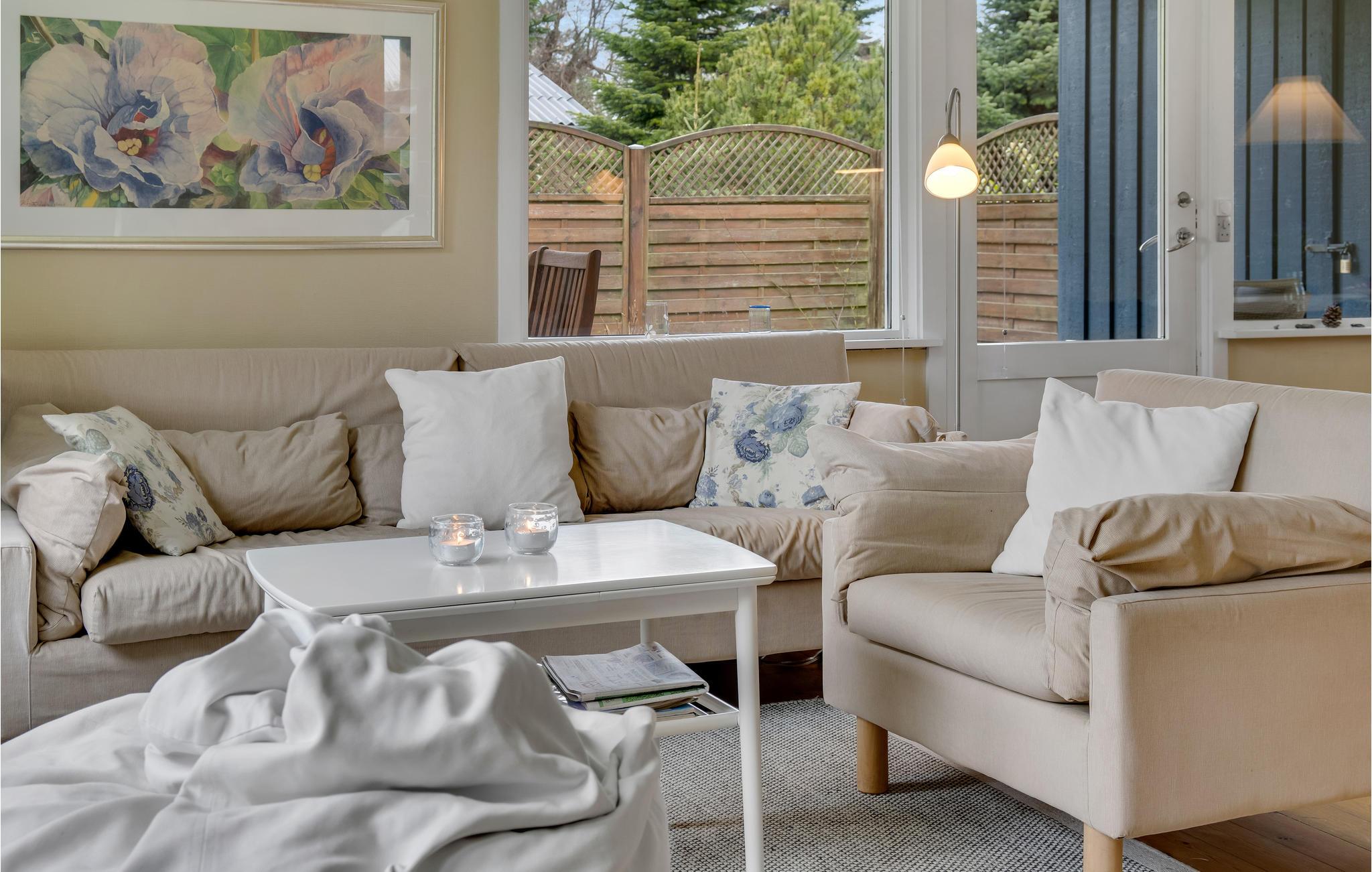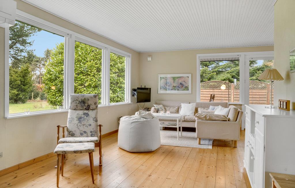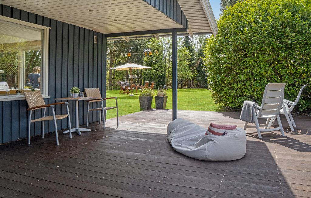 I den lyse stue er der et skønt sted at hygge sig sammen og nyde pejsen om aftenen. Udenfor inviterer terrassen med havemøbler af høj kvalitet til at slappe af, mens børnene leger i den store have. Til de små er der en gynge udenfor, et fodboldmål, træer, der indbyder til at klatre, og forskelligt legetøj, herunder et vikingespil. Grillen og bålet i bålskålen er også ideelle til varme sommeraftener, hvor I kan tilbringe tid sammen.
