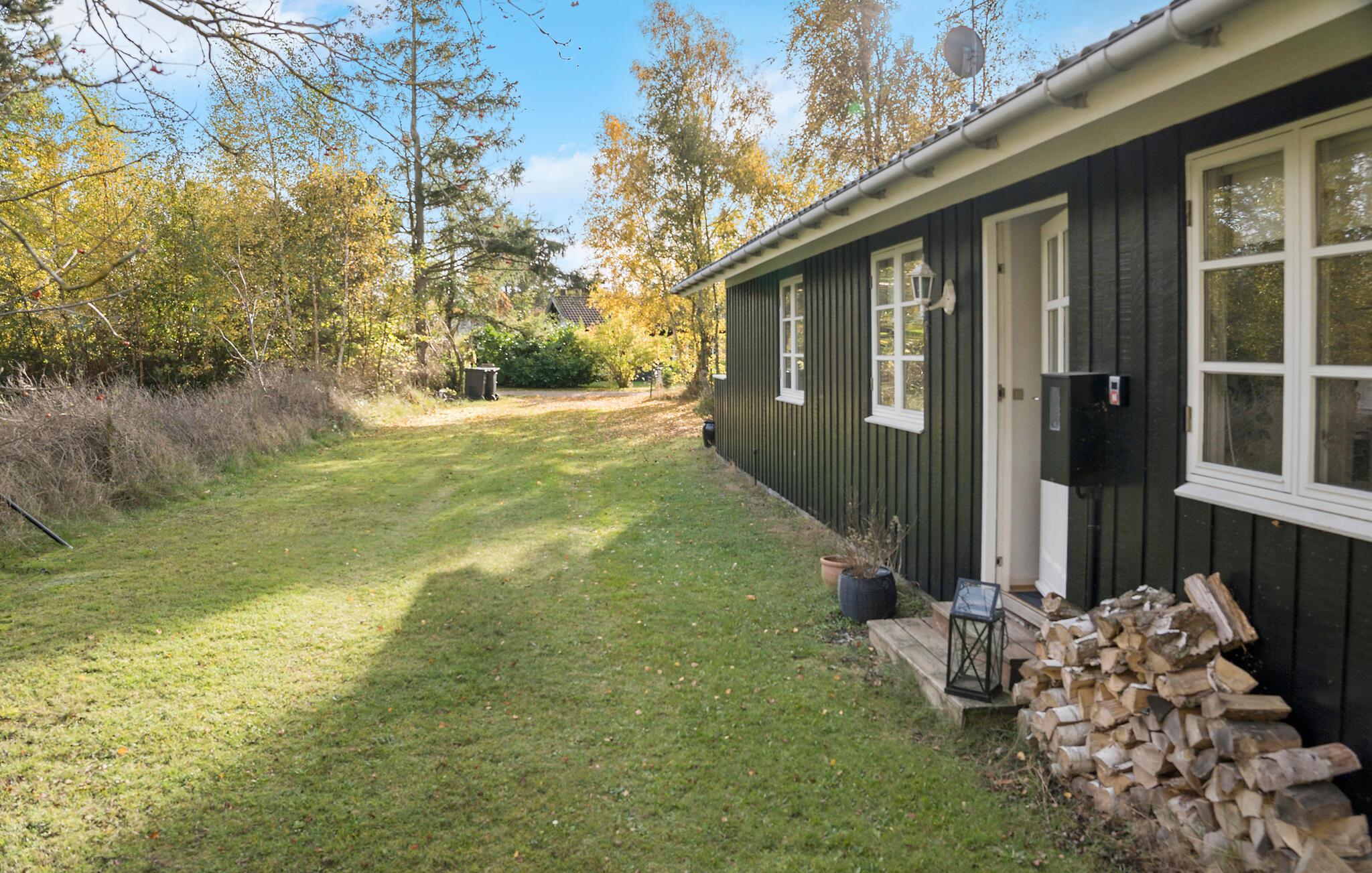 Hyggeligt træhus med stor have nær strand