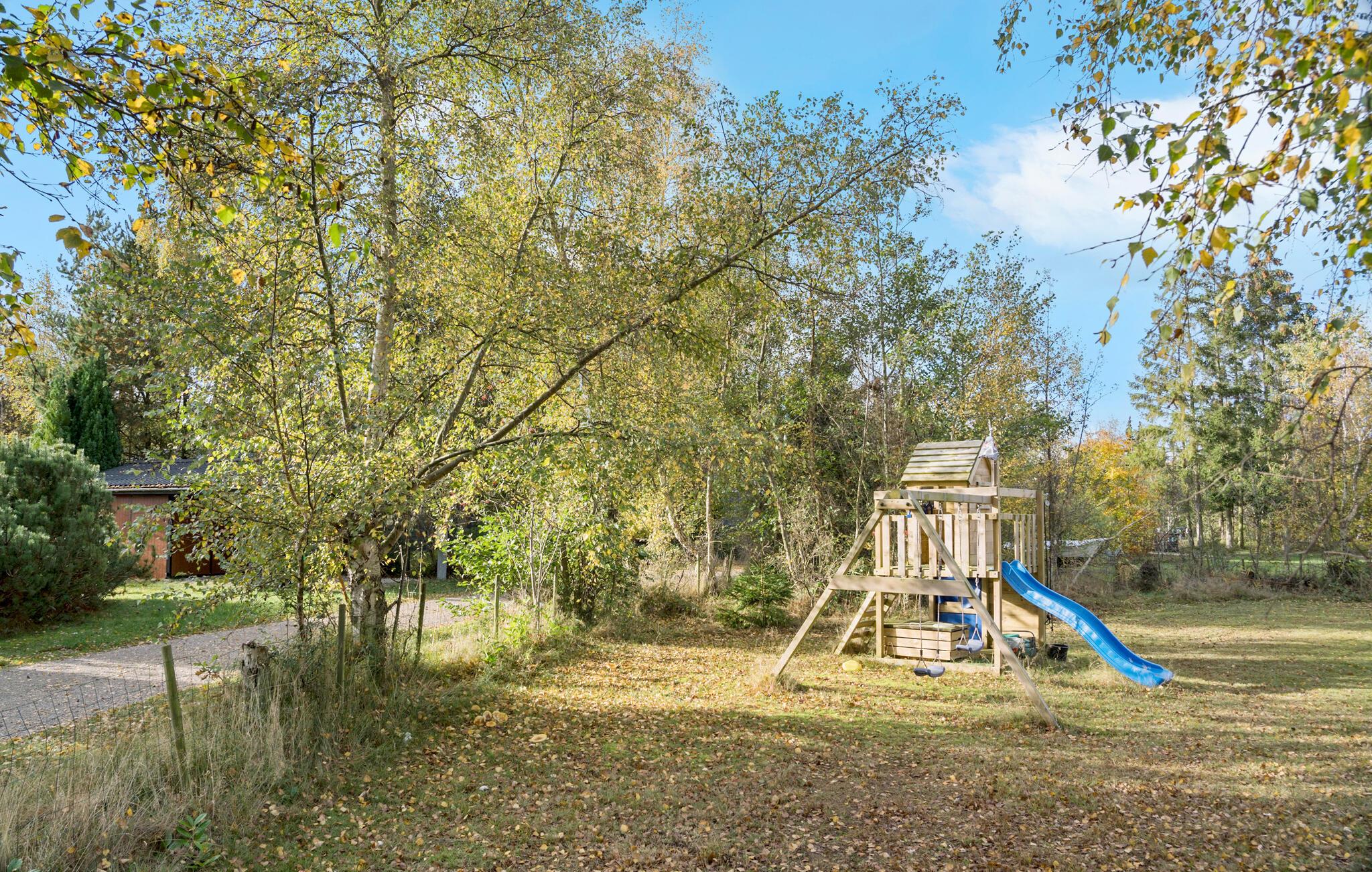 Dette indbydende feriehus byder på en varm og behagelig atmosfære, der straks får jer til at føle jer hjemme. Den smagfulde indretning og træfyret ovn skaber hygge og gør det nemt at glemme hverdagens travlhed. Slap af i den rummelige stue, eller tilbered fælles måltider i det åbne køkken. Den skønne træterrasse lægger op til afslappende timer udendørs, mens børnene frit kan lege og nyde naturen i den store have.