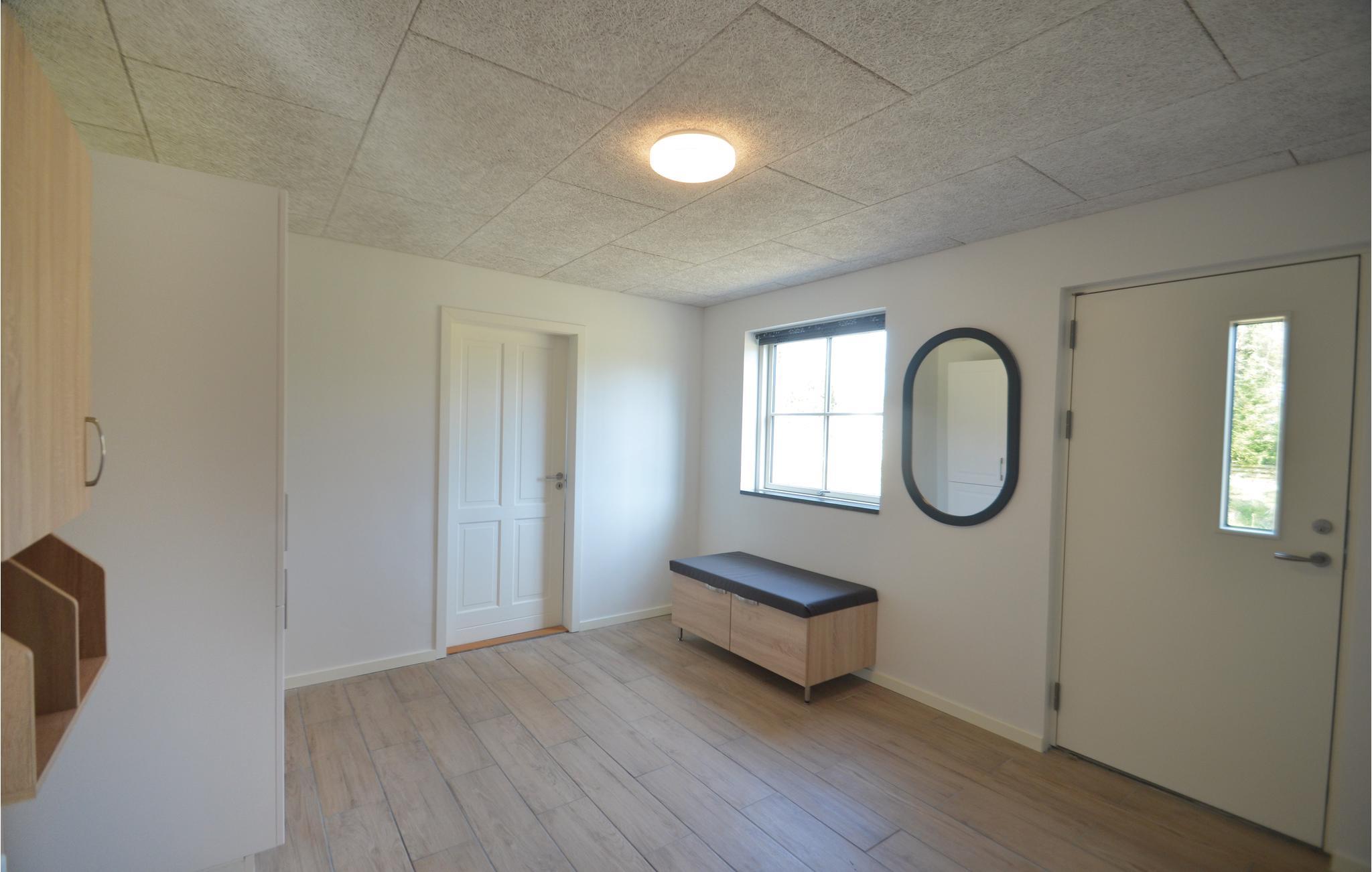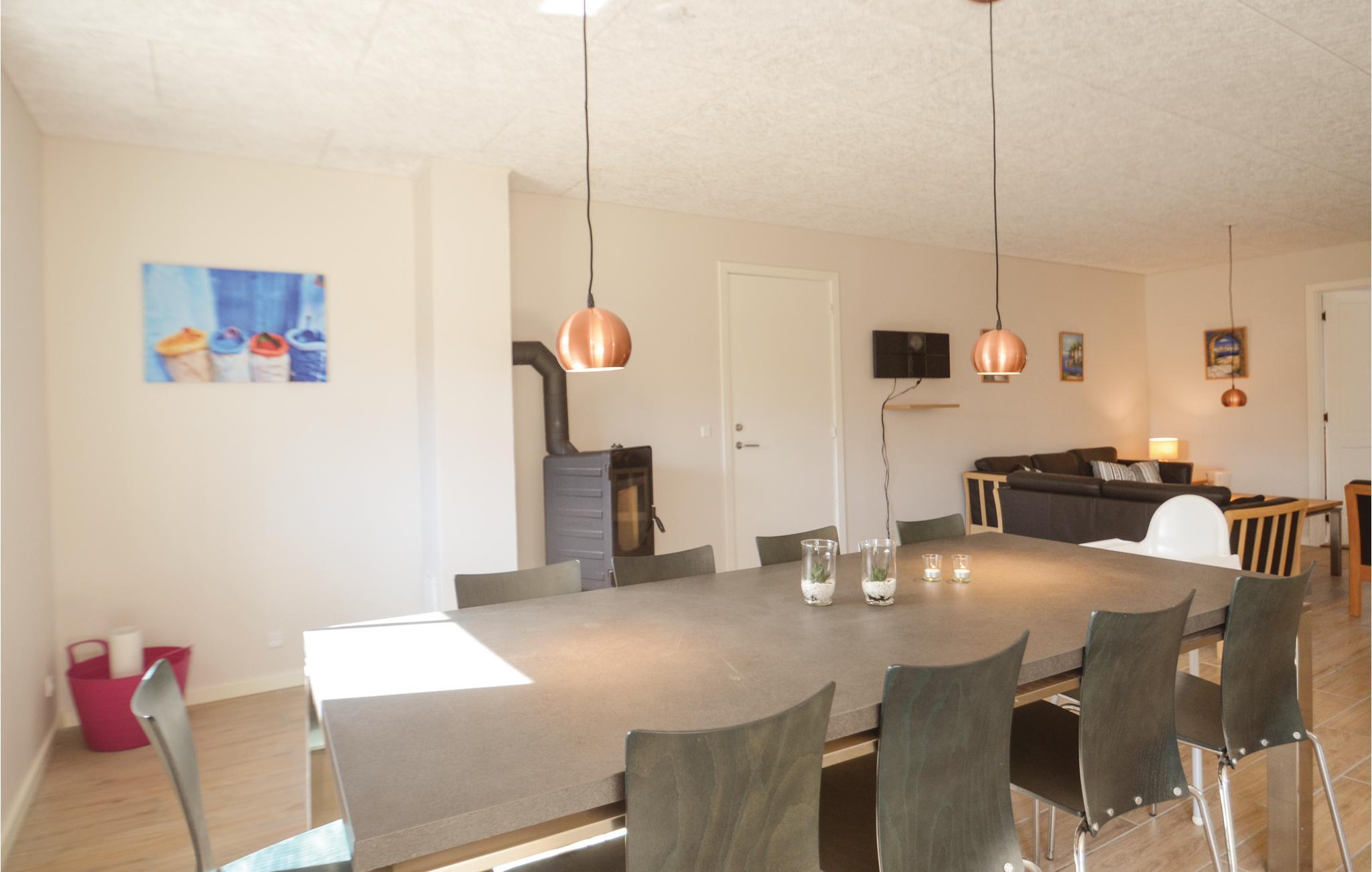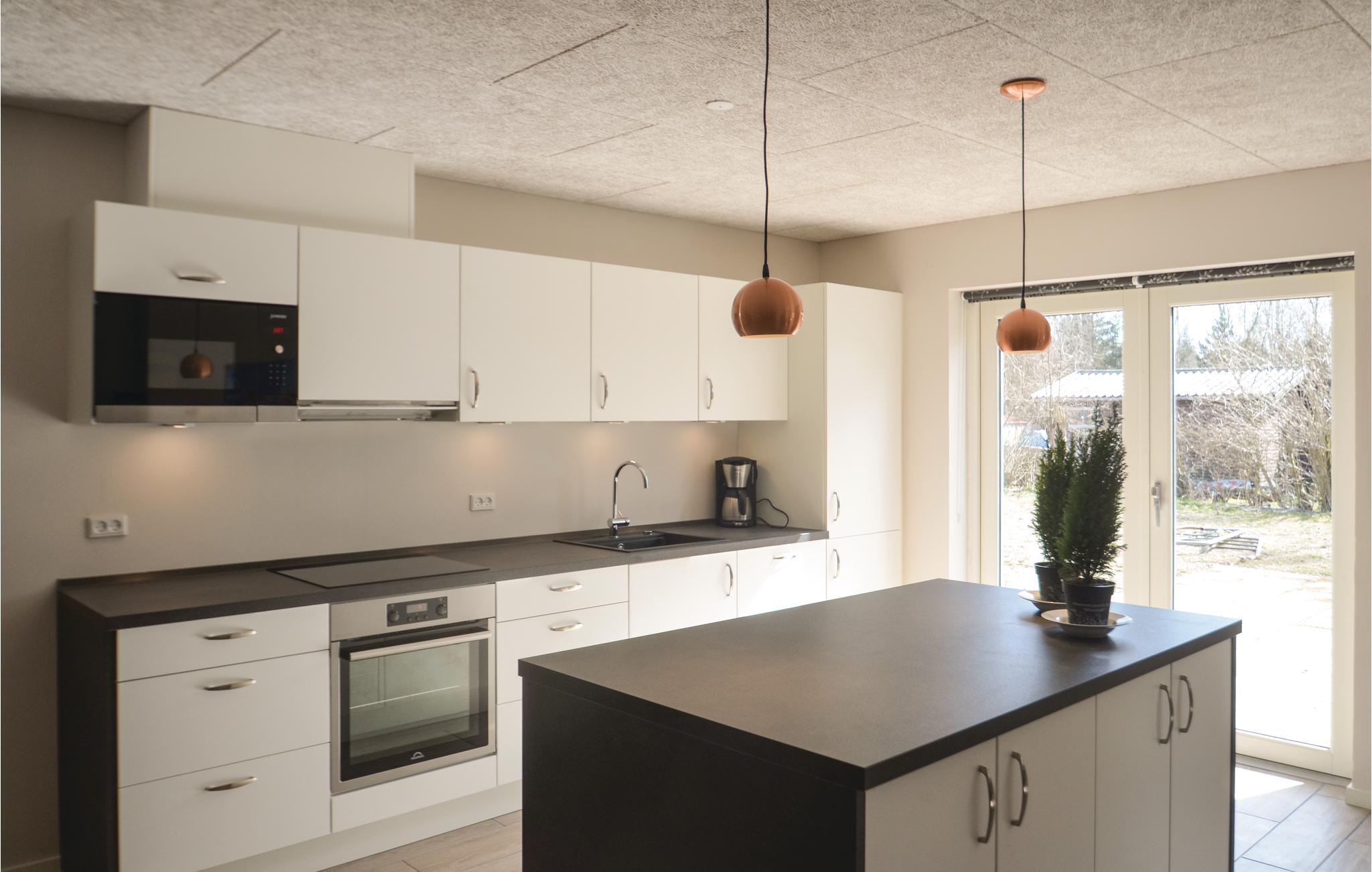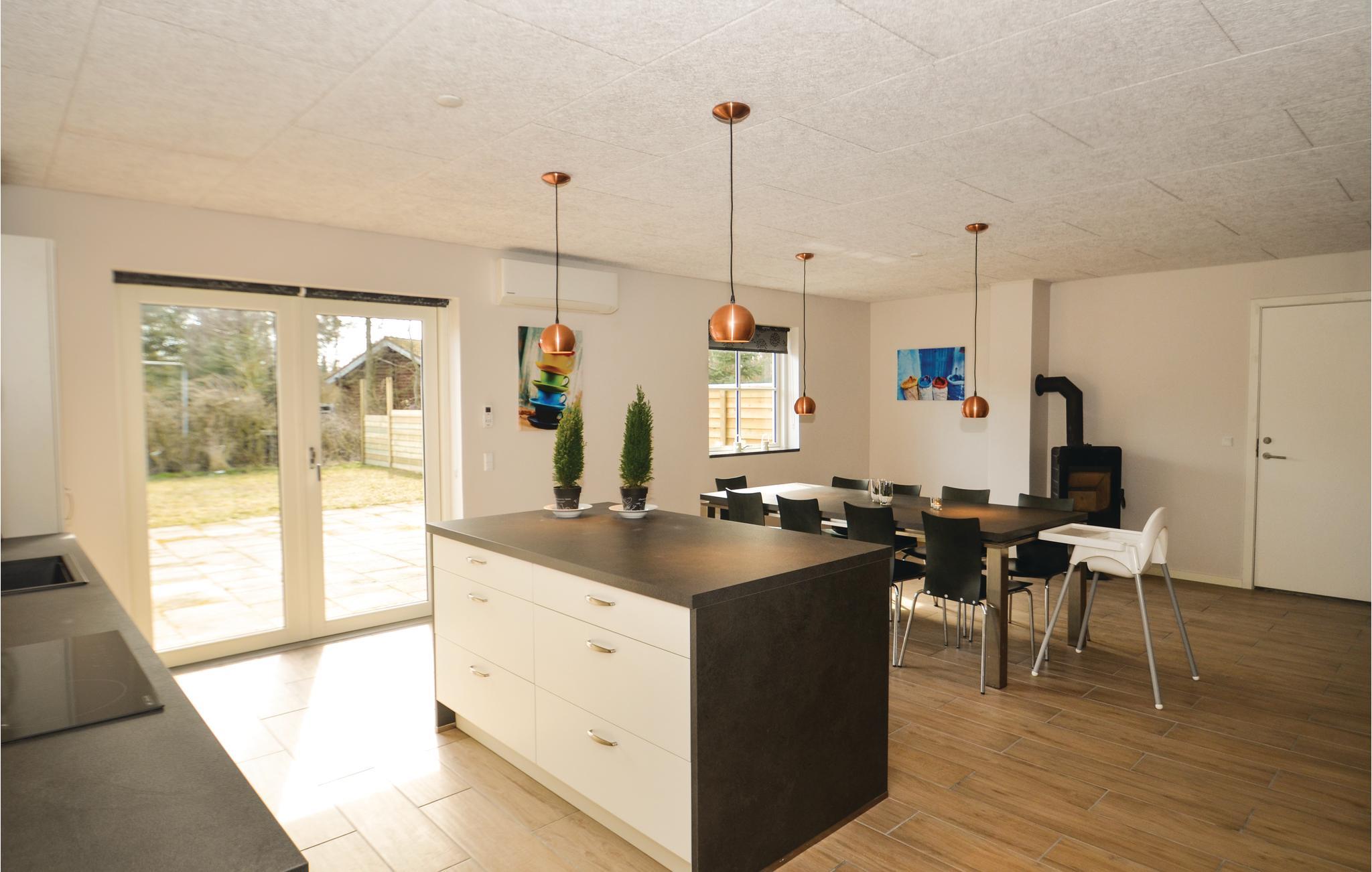 Beliggende tæt på skov og strand finder I dette skønne sommerhus. Huset indeholder tre store soveværelser, et lækkert badeværelse samt en meget rummelig stue i forbindelse med det åbne køkken. Her findes også et bordfodboldspil, og selvfølgelig er der wifi i hele huset. Huset fremstår som nyt og fra stuen er der udgang til den store terrasse og græsplæne, hvor der kan leges, slappes af og tilberedes grillmåltider på de lange sommeraftener.
