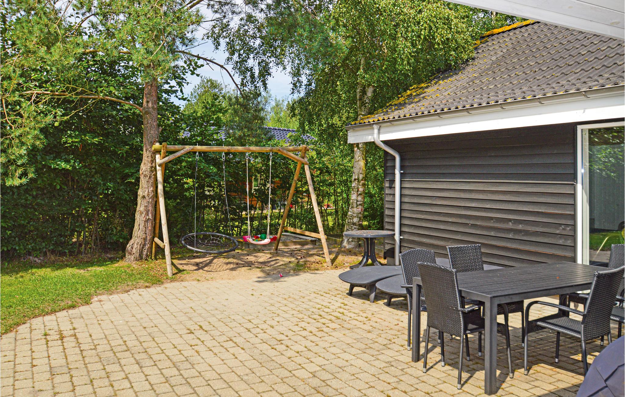 Huset ligger på en skøn naturgrund med grøntareal, gynger og sandkasse til de mindste. I kan nyde varmen på den solrige terrasse og hygge jer med at grille med familien om aftenen.
