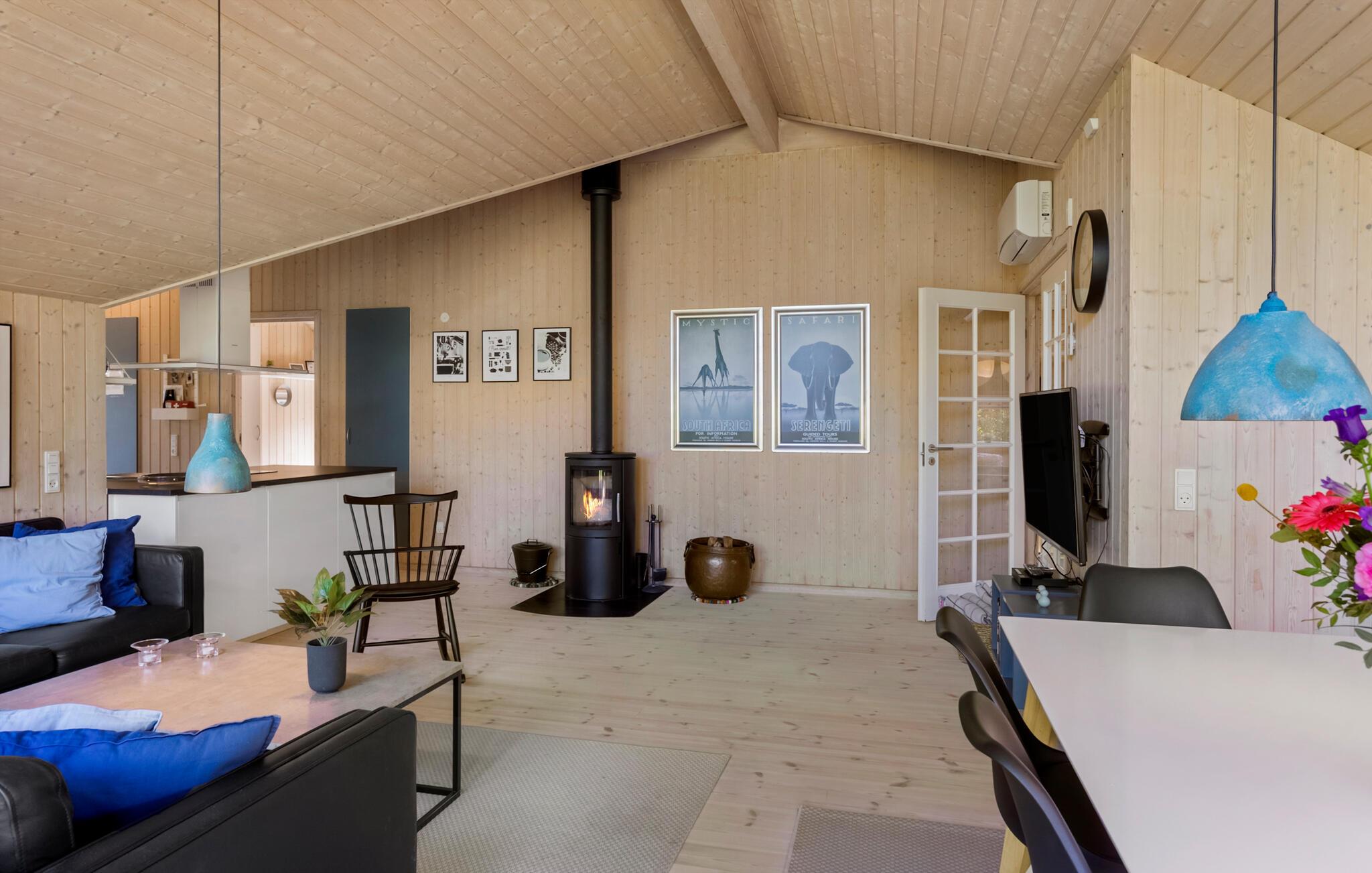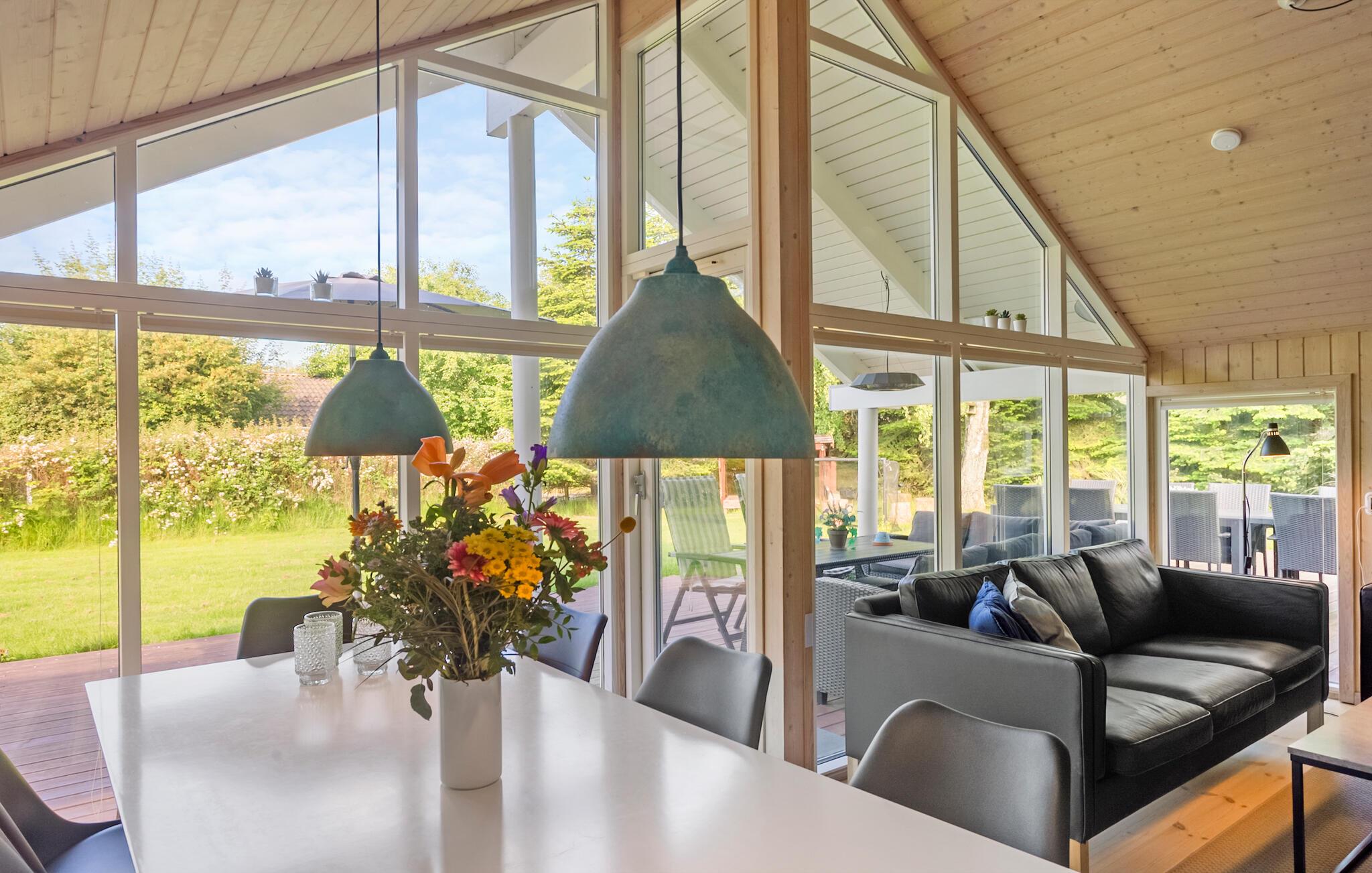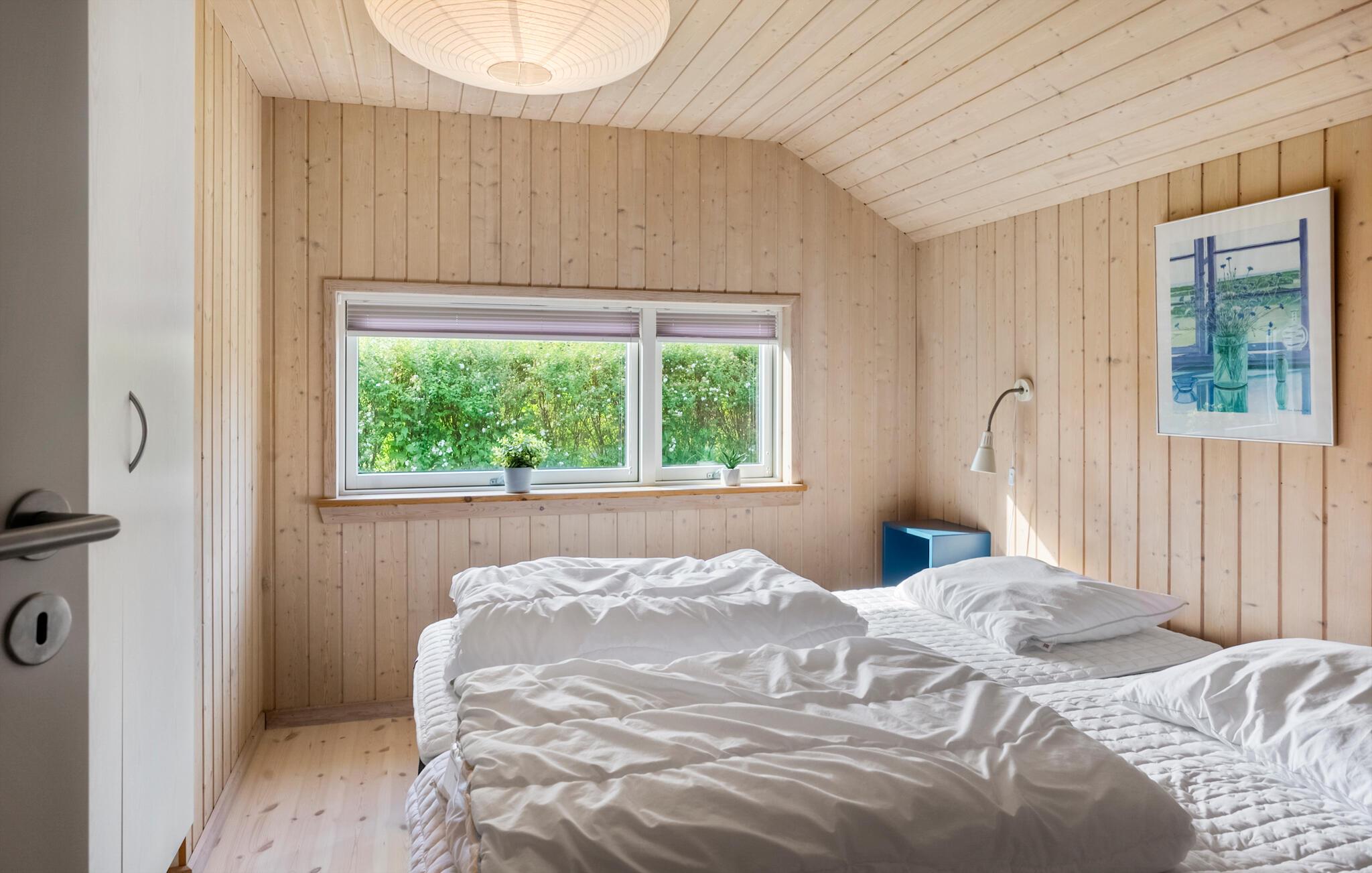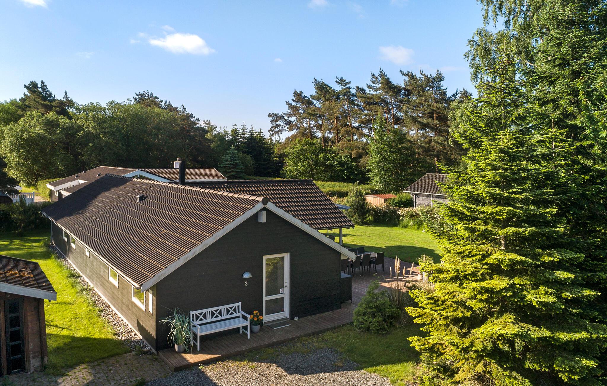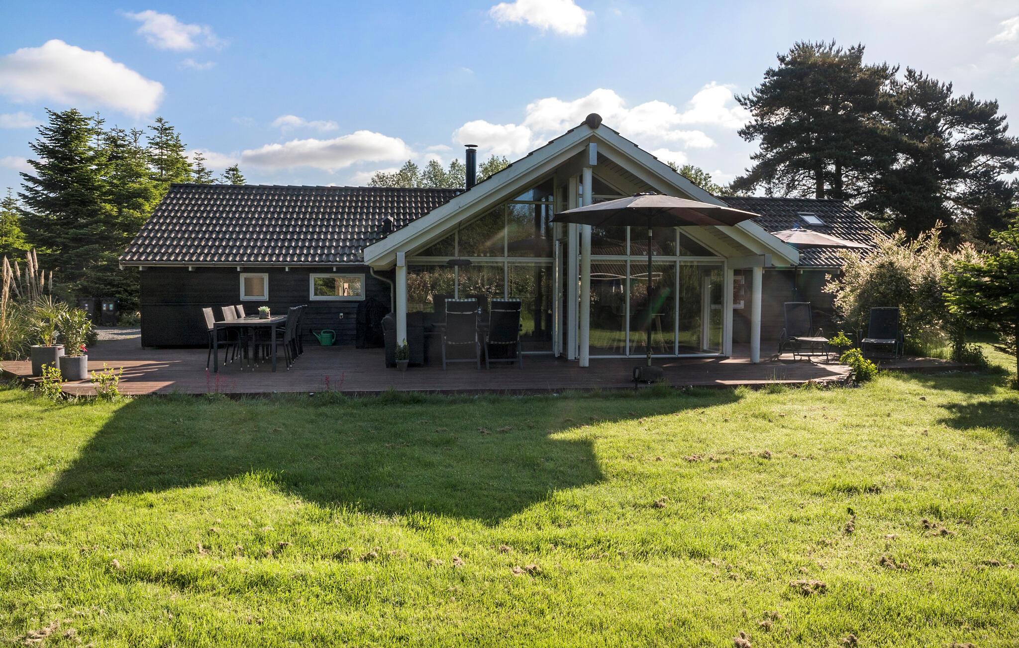 Velkommen til dette veludstyrede feriehus, hvor der venter jer en hyggelig atmosfære og mange faciliteter for både store og små. I finder flere hyggelige sovepladser i soveværelserne og på hemsen. Huset egner sig med sine to flotte badeværelser godt til et ophold for to familier, der ønsker at tilbringe ferien sammen. Den rummelige stue ligger i åben forbindelse med køkkenet og spisestuen, hvorfra I har en fin udsigt til haven. I aktivitetsrummet er der lagt op til mange timers sjov ved poolbordet eller et spil dart.
